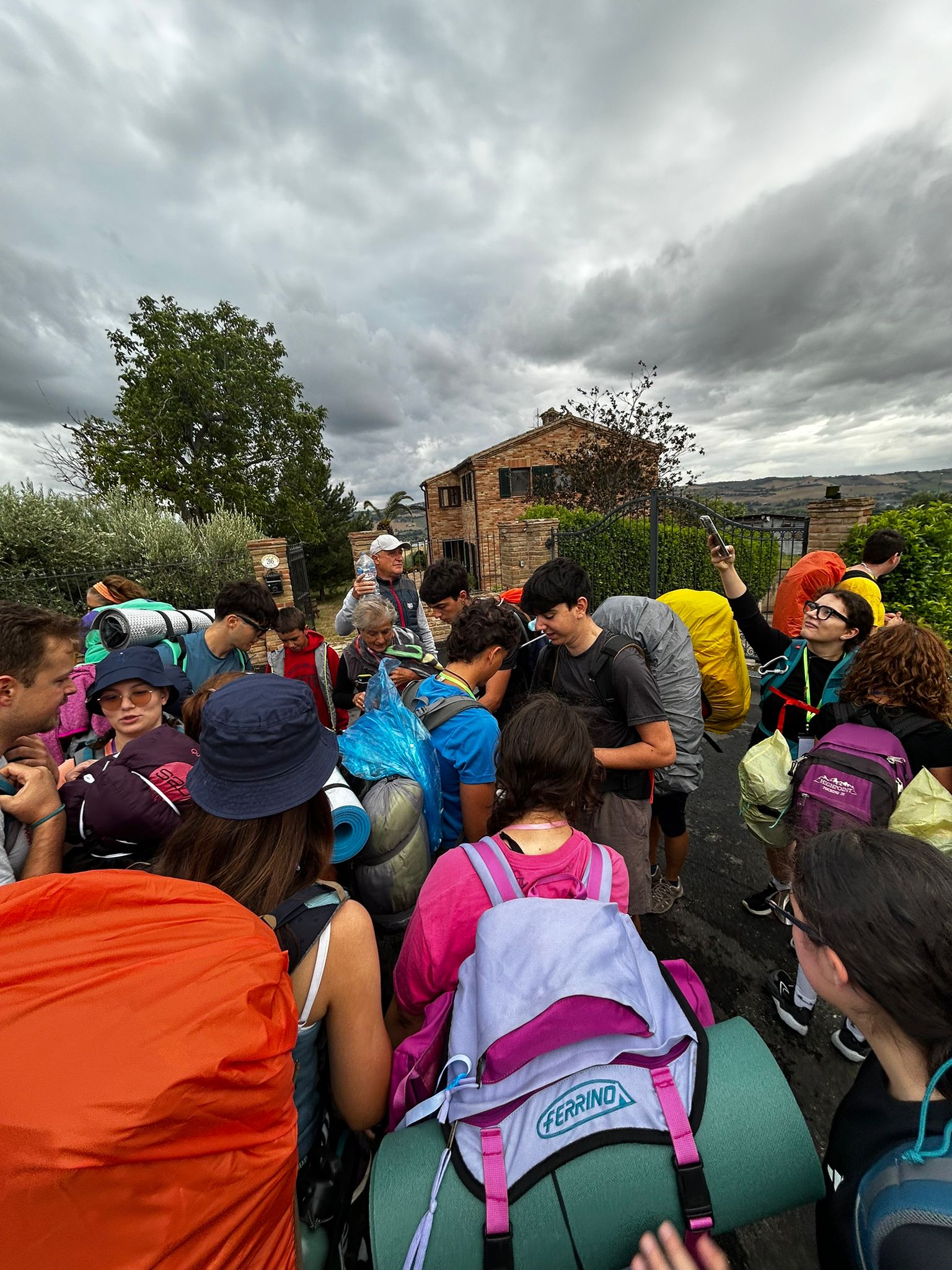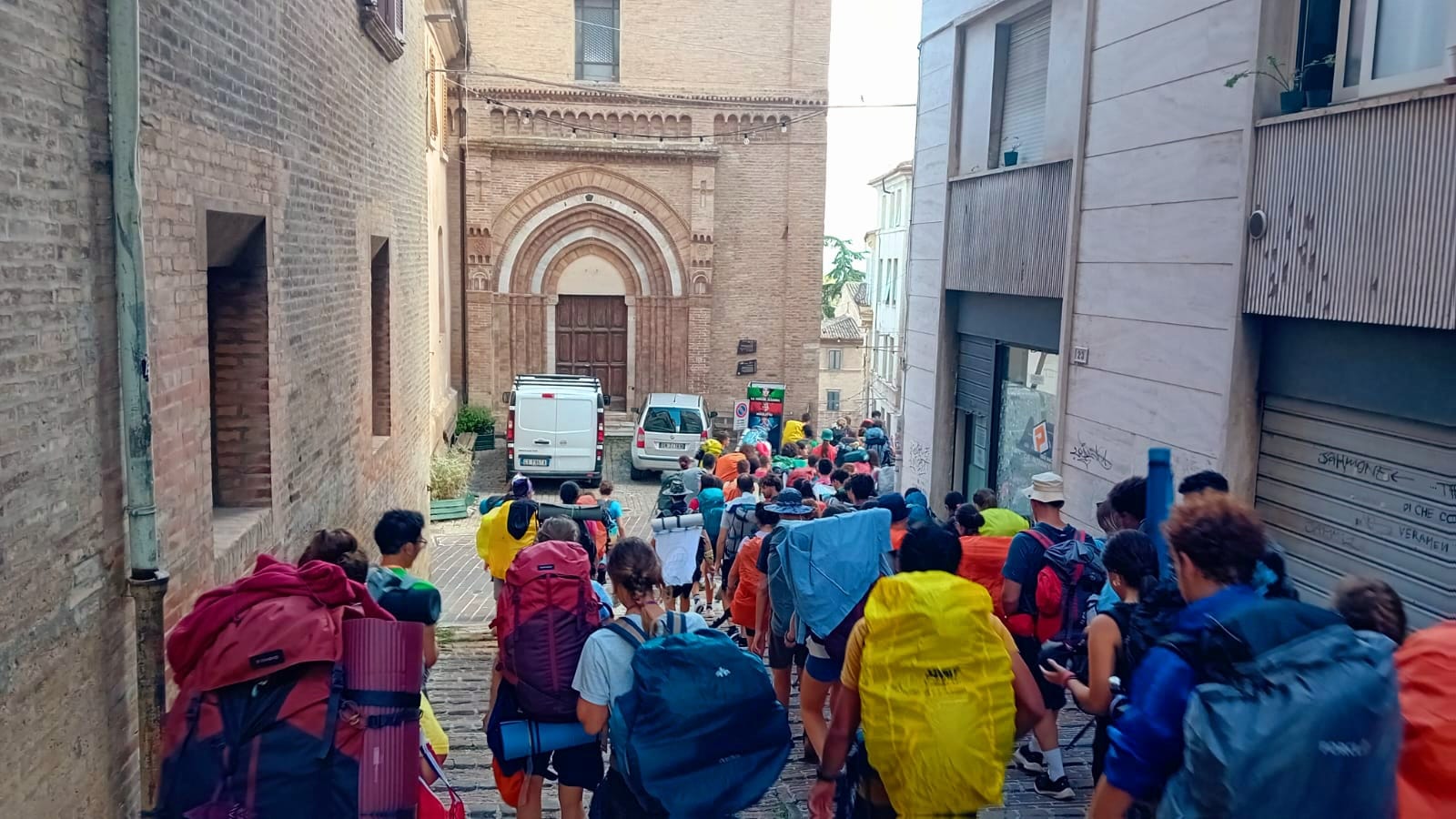 Altro percorso, altro luogo, altro relatore, ma stesse intense riflessioni per i 50 giovani della Diocesi di Ascoli Piceno e di San Benedetto del Tronto – Ripatransone – Montalto che stanno vivendo la settimana Giubilare ancora nelle Marche, in cammino lungo la Via Lauretana. Questo il racconto che la giovane Michela Lappa ci fa, a nome di tutti i ragazzi: “Ieri siamo partiti a piedi intorno alle 7:00 e a metà mattinata siamo arrivati in mattinata all’Abbazia di San Firmano, a Montelupone, in provincia di Macerata. Oltre ad ammirare la bellezza dell’edificio, che è stato per secoli un importante centro monastico e che oggi è uno splendido esempio di architettura romanica, abbiamo ascoltato una bella catechesi riferita al brano evangelico dell’incontro di Gesù con la Samaritana al pozzo. Ci siamo poi rimessi in viaggio fino a giungere al santuario di Santa Maria del Monte, a Macerata, dove abbiamo pranzato, preso un gelato e vissuto un bel momento distensivo in cui ci siamo messi a cantare tutti insieme. Successivamente siamo ripartiti, sempre a piedi, per arrivare alla nostra destinazione del giorno: l’oratorio dei Salesiani a Macerata, un centro giovanile che fa parte dell’Istituto Salesiano San Giuseppe. Abbiamo scoperto un luogo di aggregazione e formazione per i giovani, che offre attività sportive, culturali, di gruppo e di apostolato, oltre che un progetto di vita comunitaria per giovani. Lì abbiamo celebrato insieme l’Eucarestia e poi abbiamo cenato. In serata abbiamo vissuto un bel momento di condivisione, in cui ci siamo confrontati a piccoli gruppi sull’esperienza della giornata. In particolare è emerso lo sguardo di chi ci vedeva passare, di chi si sorprendeva nel vedere un gruppo di giovani in cammino. Ci siamo resi conto che, in qualche modo, stavamo dando testimonianza della nostra fede. Questo pensiero ci ha procurato molta gioia”.