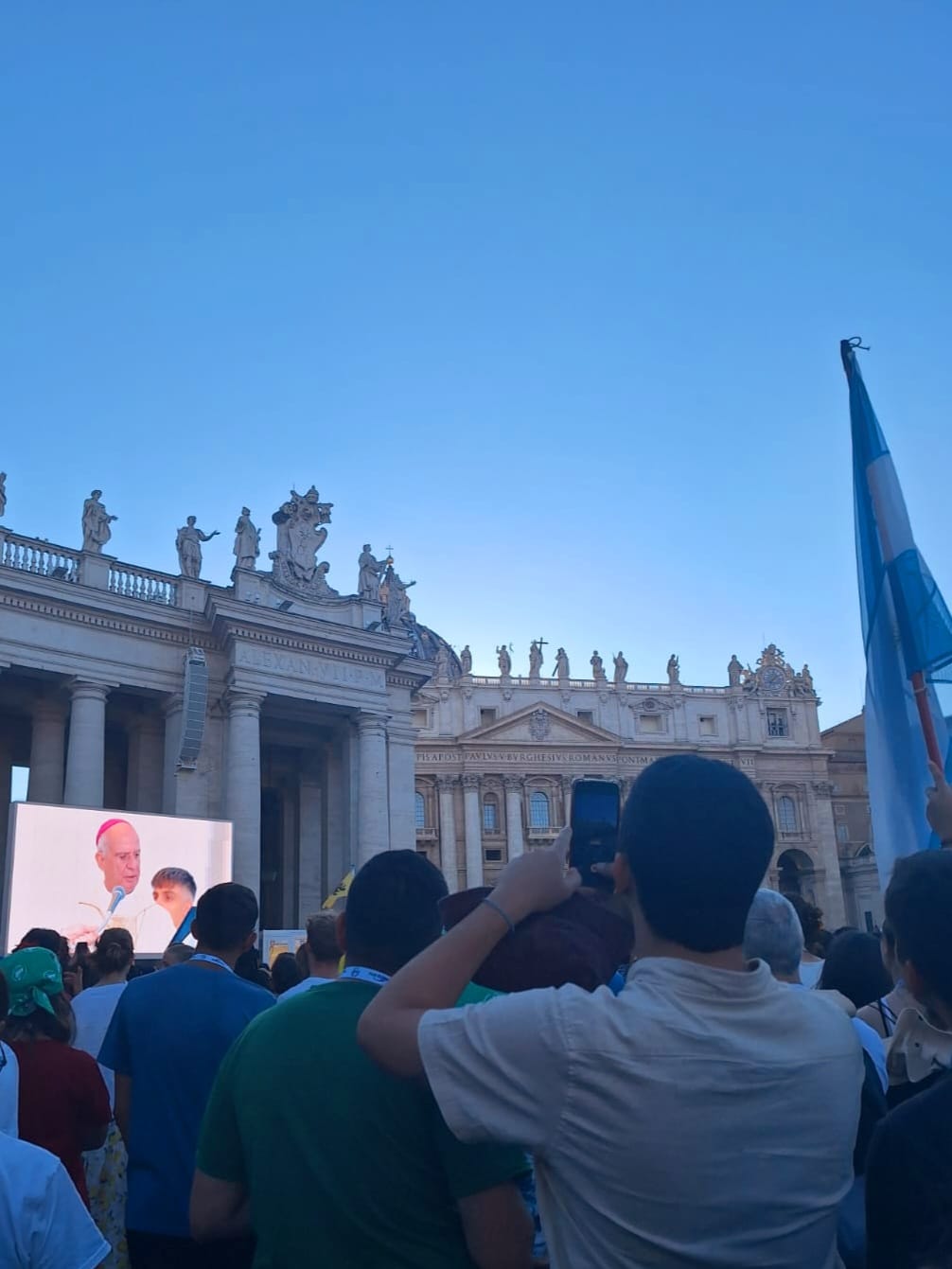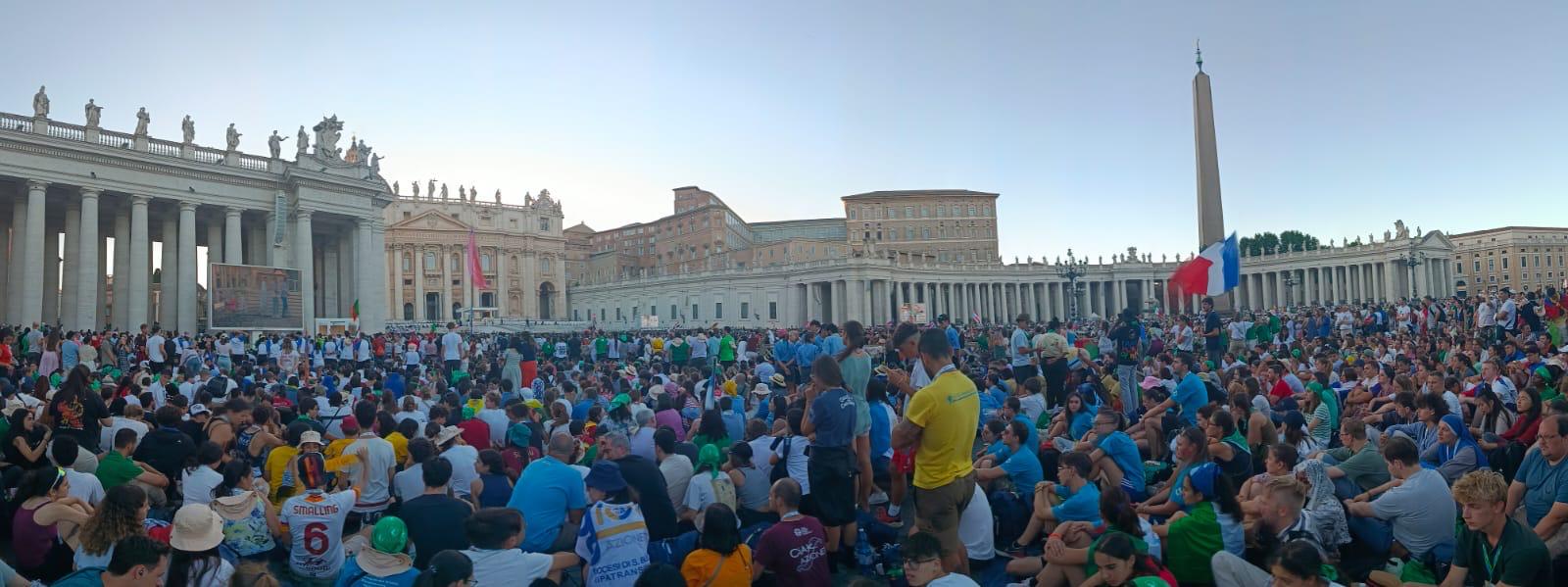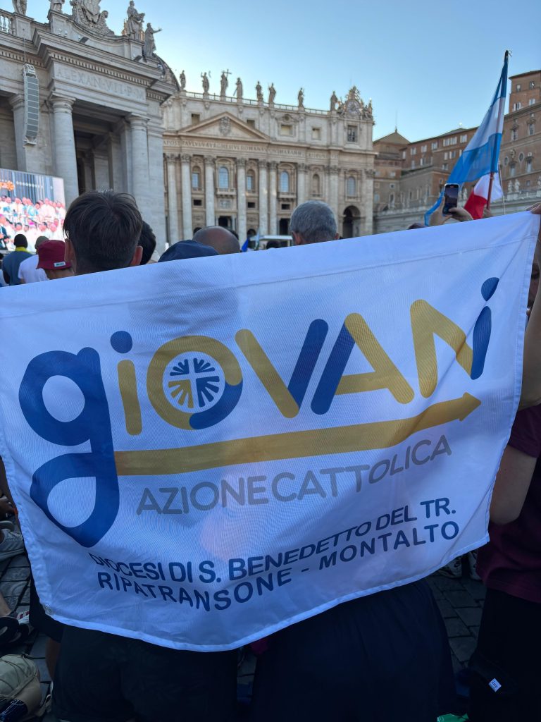 Ad ascoltarle dal vivo, insieme alla folla sterminata di pellegrini accorsi da 146 Paesi del mondo, c’erano anche 18 giovani della Diocesi di San Benedetto del Tronto – Ripatransone – Montalto, i quali, attraverso le parole di Leonardo Curzi, raccontano: “Abbiamo iniziato la mattinata con una ricca colazione offerta dalla parrocchia San Leonardo da Porto Maurizio, che ci ospita ad Ostia. Poi siamo andati in chiesa per ascoltare una catechesi sul tema della sete e della delusione tenuta da mons. Sandro Salvucci, arcivescovo metropolita della Diocesi di Pesaro ed arcivescovo della Diocesi di Urbino-Urbania-Sant’Angelo in Vado. Dopo la bellissima meditazione, c’è stato spazio anche per una riflessione sia personale sia di gruppo. Durante questo momento di spiritualità e condivisione, abbiamo meditato sul Vangelo di Giovanni, che racconta l’incontro di Gesù e la Samaritana al pozzo, ed abbiamo ascoltato una bellissima canzone di Bresh, “Altezza cielo”, che parla proprio di un’entità superiore, che per noi cristiani è Dio, che osserva i nostri errori senza giudicare, offrendo un punto di vista più ampio e compassionevole. La canzone è un invito ad elevarsi al di sopra delle azioni umane, cercando di vedere le cose con più prospettiva e comprensione, anche verso se stessi, come se si stesse guardando da ‘altezza cielo'”.
