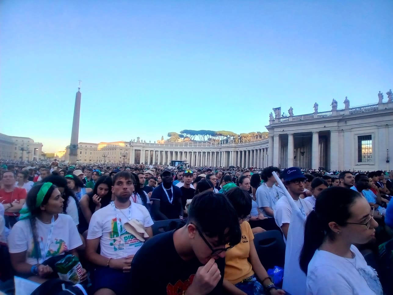 Nel pomeriggio i giovani pellegrini presenti a Roma hanno partecipato alla festa degli italiani in piazza San Pietro, durante la quali hanno potuto ascoltare testimonianze e musica da parte di volti noti del mondo della musica, dell’arte e dello spettacolo.