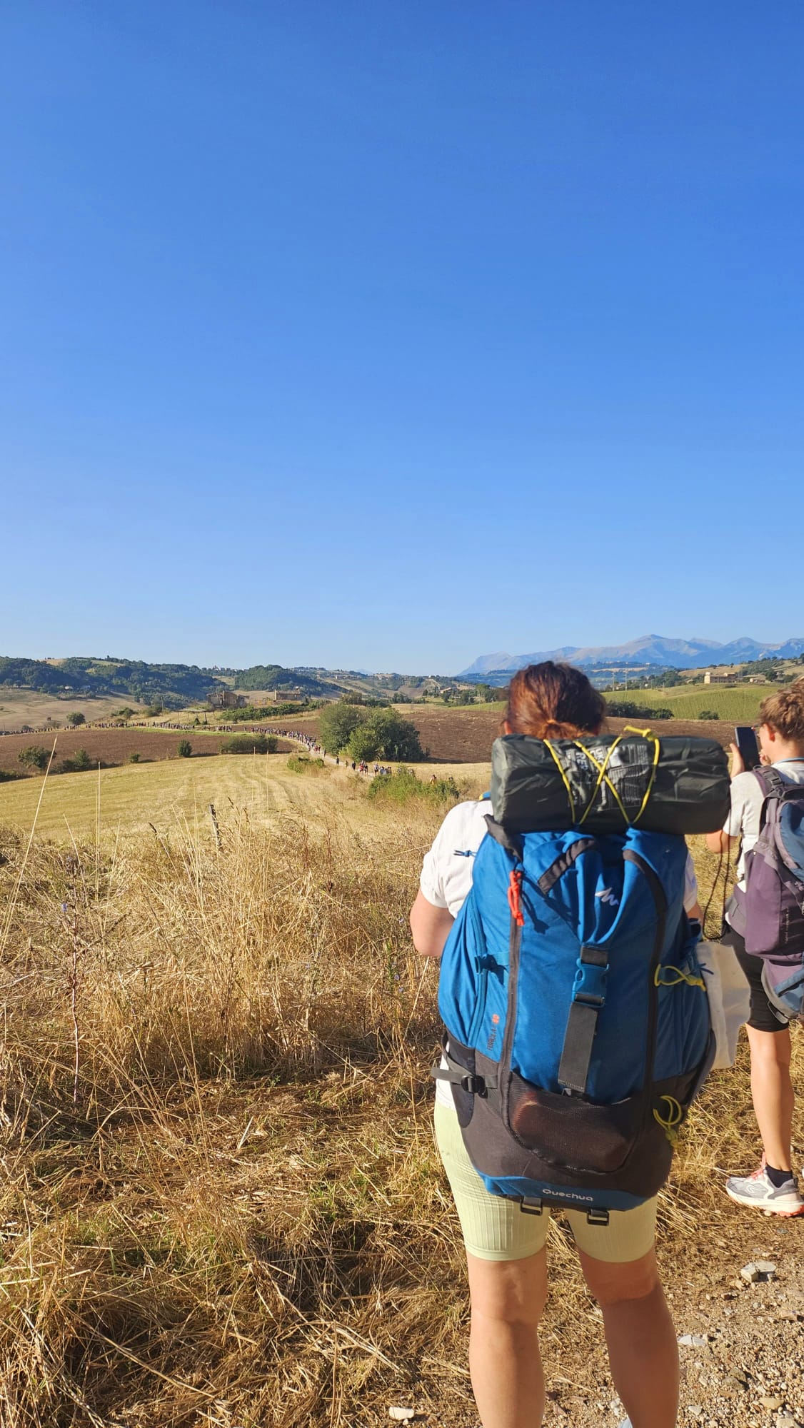 Queste le parole di Michela Lappa e Chiara Di Buò, le quali ci raccontano la giornata: “Siamo partiti da Urbisaglia intorno 7:00, dirigendoci verso Tolentino. Durante il tragitto ci siamo fermati due volte: prima per fare una ricca colazione offerta dalla comunità di Tolentino, così da avere le energie per compiere il percorso; poi per pregare ed ascoltare una catechesi fatta da don Matteo Calvaresi, che è stata molto profonda e toccante. Don Matteo, infatti, attraverso la lettura di un brano evangelico, ci ha raccontato la sua esperienza personale e ci ha spiegato cosa significhi rinascere dall’acqua e dallo Spirito. Ci ha inoltre ricordato che la Confessione non é un atto morale, ma un atto di rinascita. Queste parole ci hanno rasserenato e ci hanno fatto vedere la forza di questo Sacramento, una forza forse sconosciuta per alcuni. C’è stato spazio anche per un momento di meditazione personale, in cui abbiamo riflettuto in vista della veglia penitenziale che avremmo vissuto nel pomeriggio e di quella che faremo a Tor Vergata nella notte tra Sabato e Domenica”.