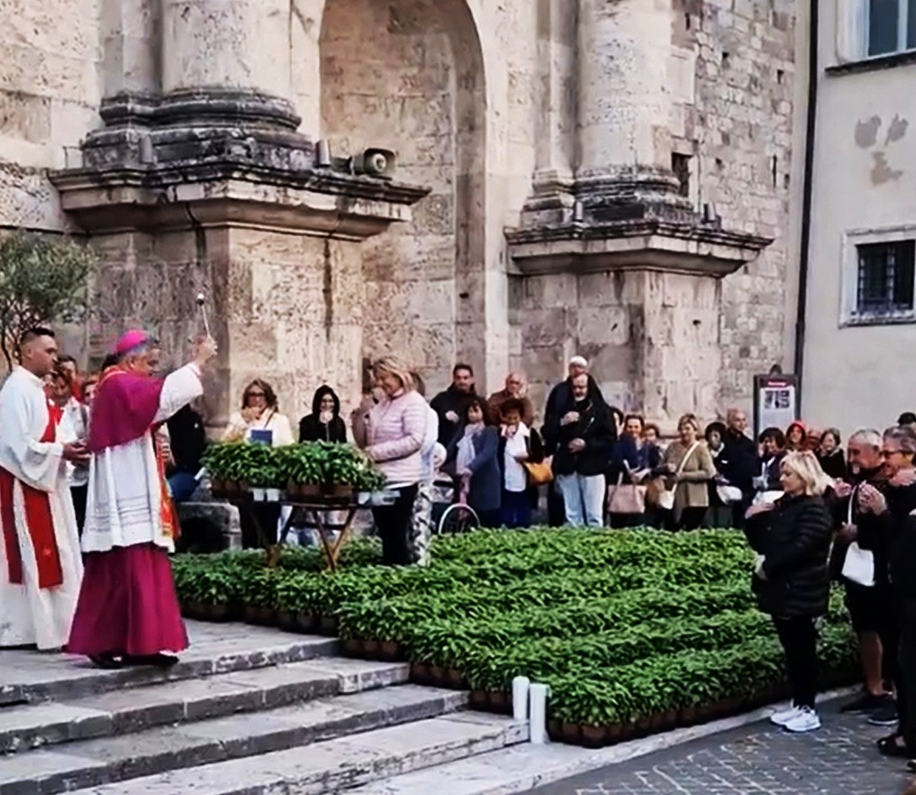Dopo aver invocato Sant’Emidio insieme all’assemblea, con una preghiera scritta appositamente per la festività odierna, mons. Palmieri ha benedetto il popolo di Dio presente sul sagrato e le piante di basilico. I fedeli hanno poi riempito le maestose navate della Cattedrale di Sant’Emidio per la Celebrazione Eucaristica, presieduta da don Elio Nevigari.