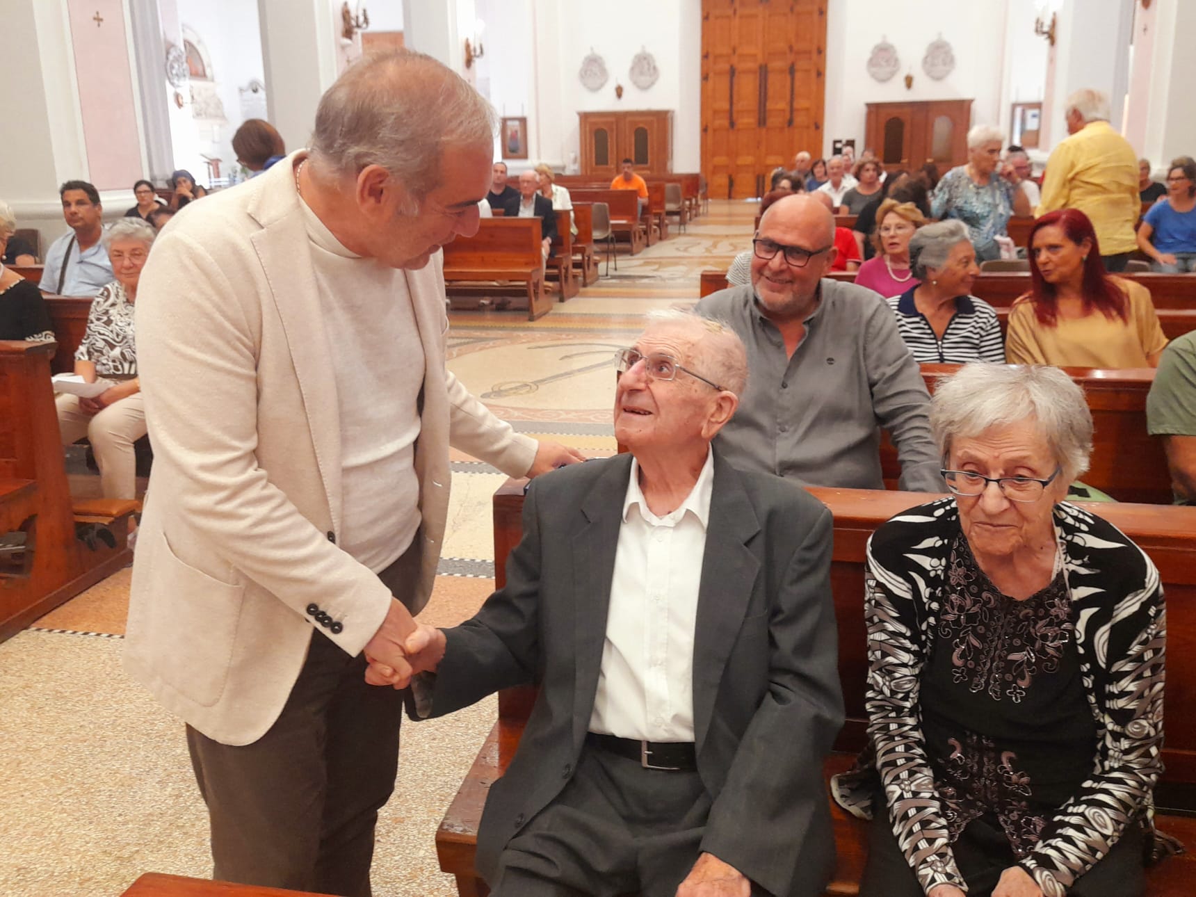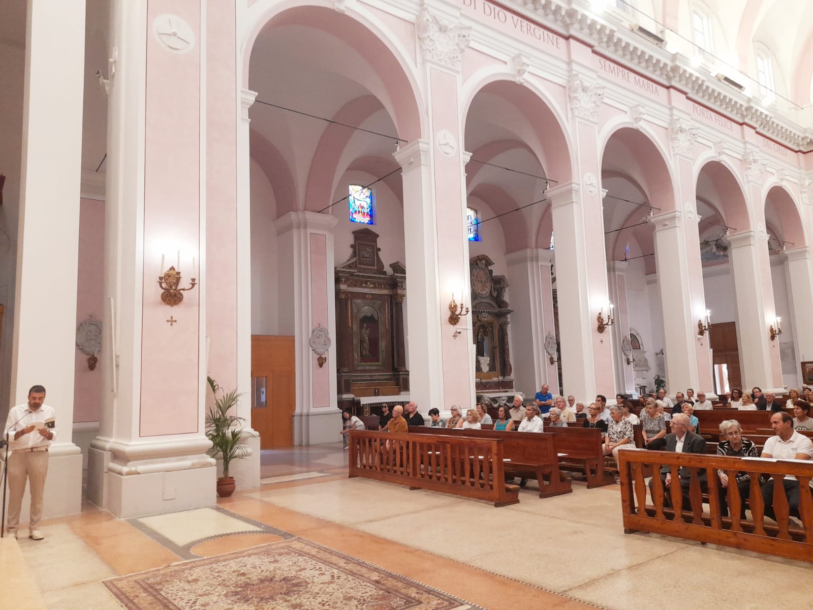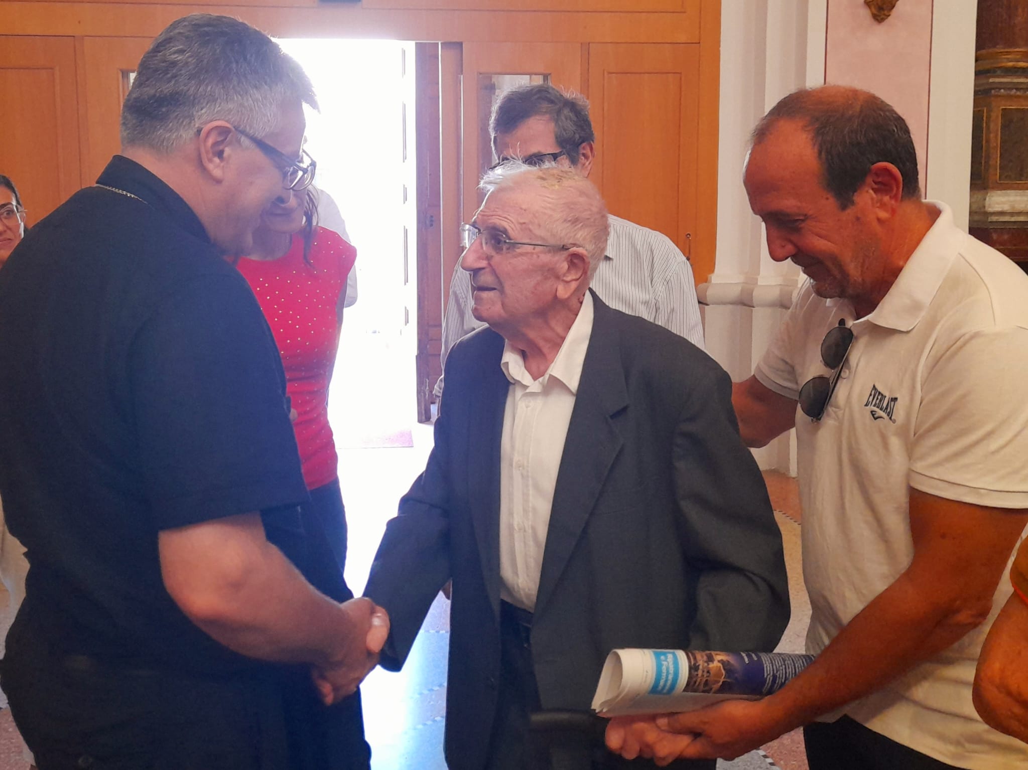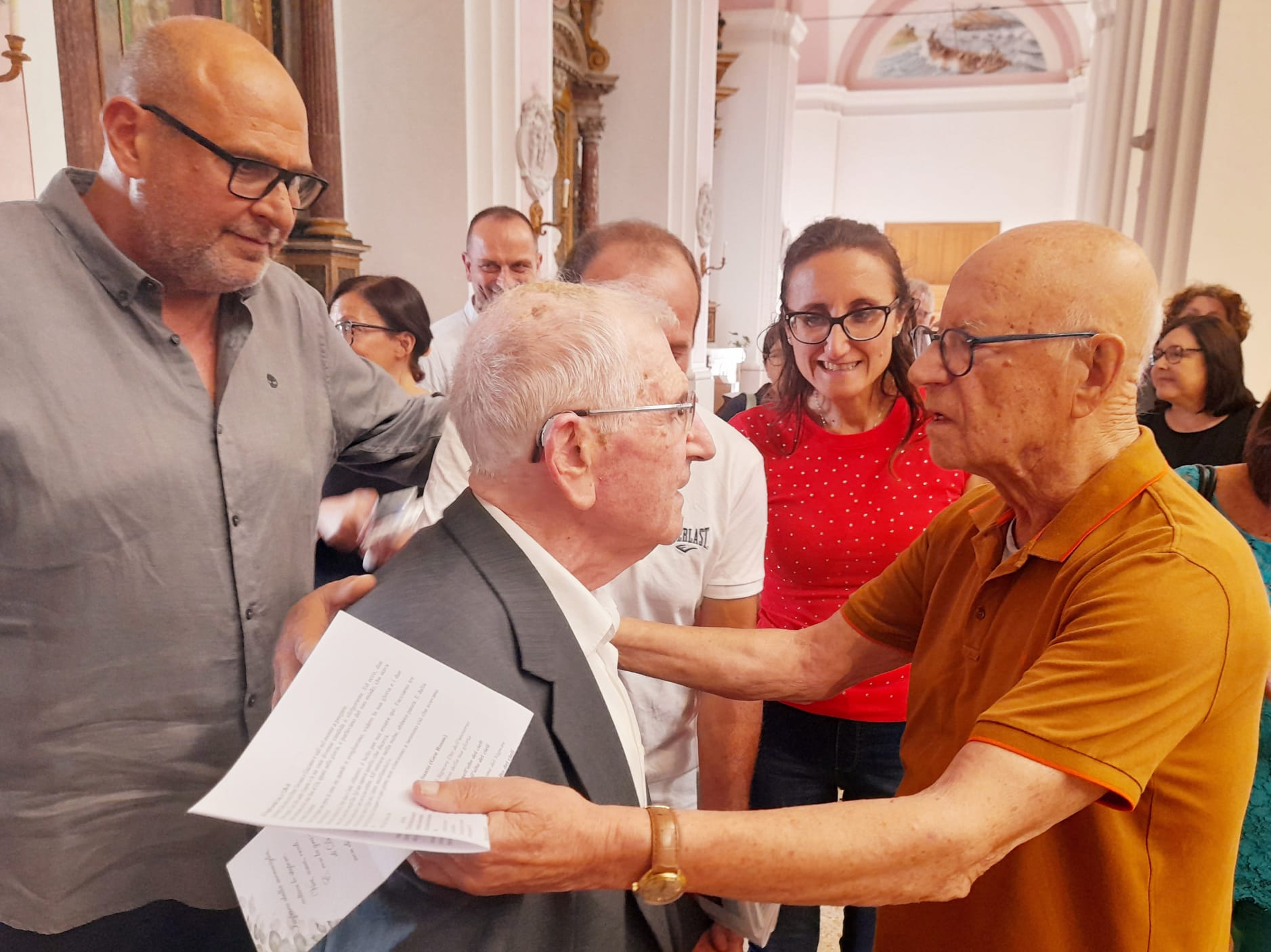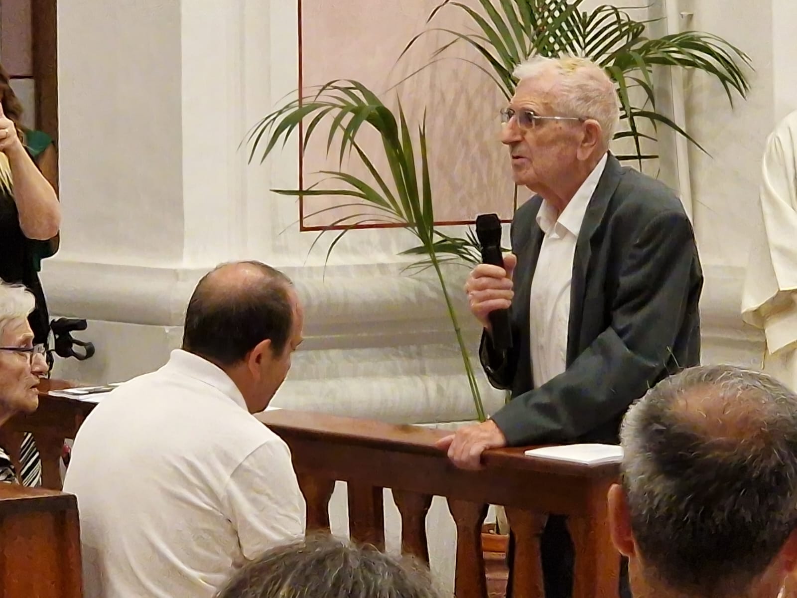 Dopo i riti di Comunione, il direttore responsabile de L’Ancora, Simone Incicco, ha voluto manifestare l’affetto, la stima e la gratitudine della comunità al prof. Pietro Pompei, donando al festeggiato una pubblicazione dal titolo “Sulle spalle dei giganti – Omaggio a Pietro Pompei, custode della memoria e voce instancabile“. Ha detto Incicco: “Caro Pietro, ci sono momenti nella vita in cui le parole si fanno dono, carezza, gratitudine. Il tuo 90° compleanno è uno di questi. E questa pagina vuole essere non solo un augurio, ma un abbraccio corale, un segno tangibile dell’affetto e della riconoscenza che ti circondano. Da tempo, con alcuni amici e colleghi, sentivamo il desiderio di raccogliere ciò che rappresenti per la nostra comunità. È nato così questo libro, che riunisce lettere, pensieri, ricordi, poesie, testimonianze. Tante voci diverse che si ritrovano unite da un sentimento comune: la stima profonda verso un uomo che ha speso la sua vita intrecciando cultura e fede, parola e servizio, memoria e speranza.
