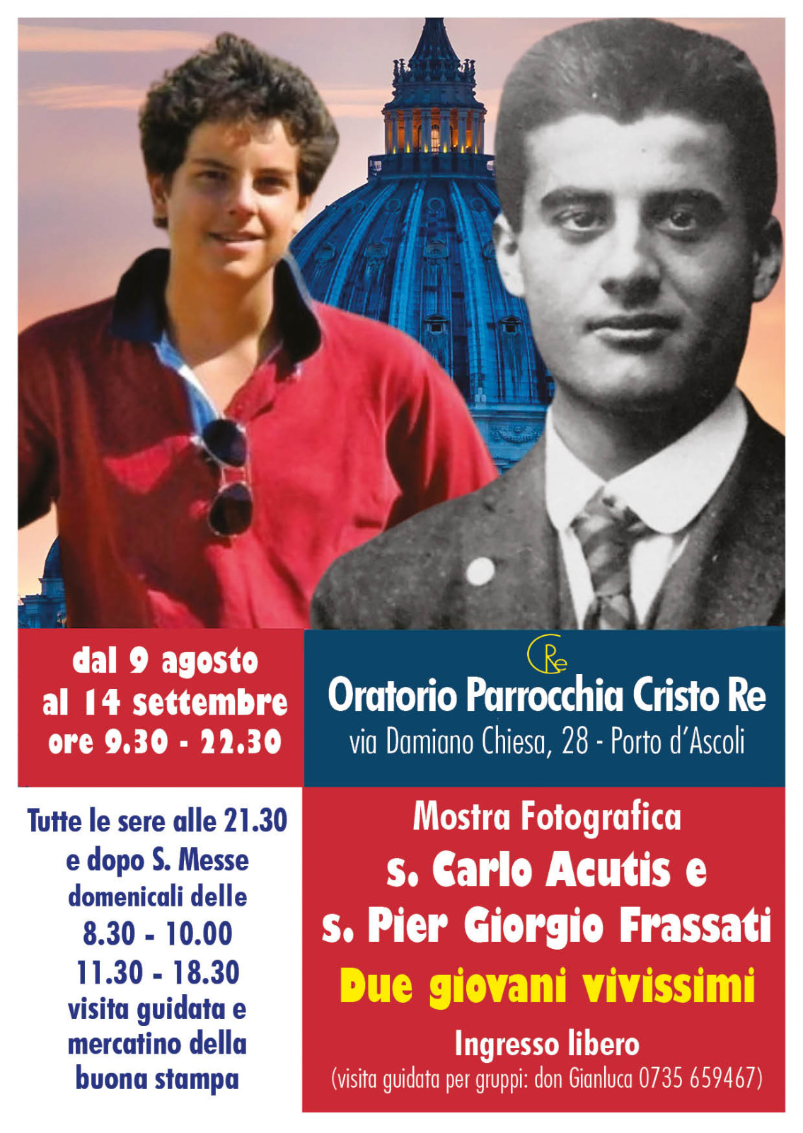 SAN BENEDETTO DEL TRONTO – È in corso dal 9 Agosto e resterà aperta fino al 14 Settembre 2025, nella Sala San Francesco della Parrocchia Cristo Re (Via Damiano Chiesa, al piano terra della ex scuola Damiano Chiesa) in Porto d’Ascoli di San Benedetto del Tronto, una mostra fotografica realizzata da padre Roberto Brunelli dell’Ordine dei Frati Minori Conventuali, dal titolo “S. Carlo Acutis e S. Pier Giorgio Frassati, due giovani vivissimi“.