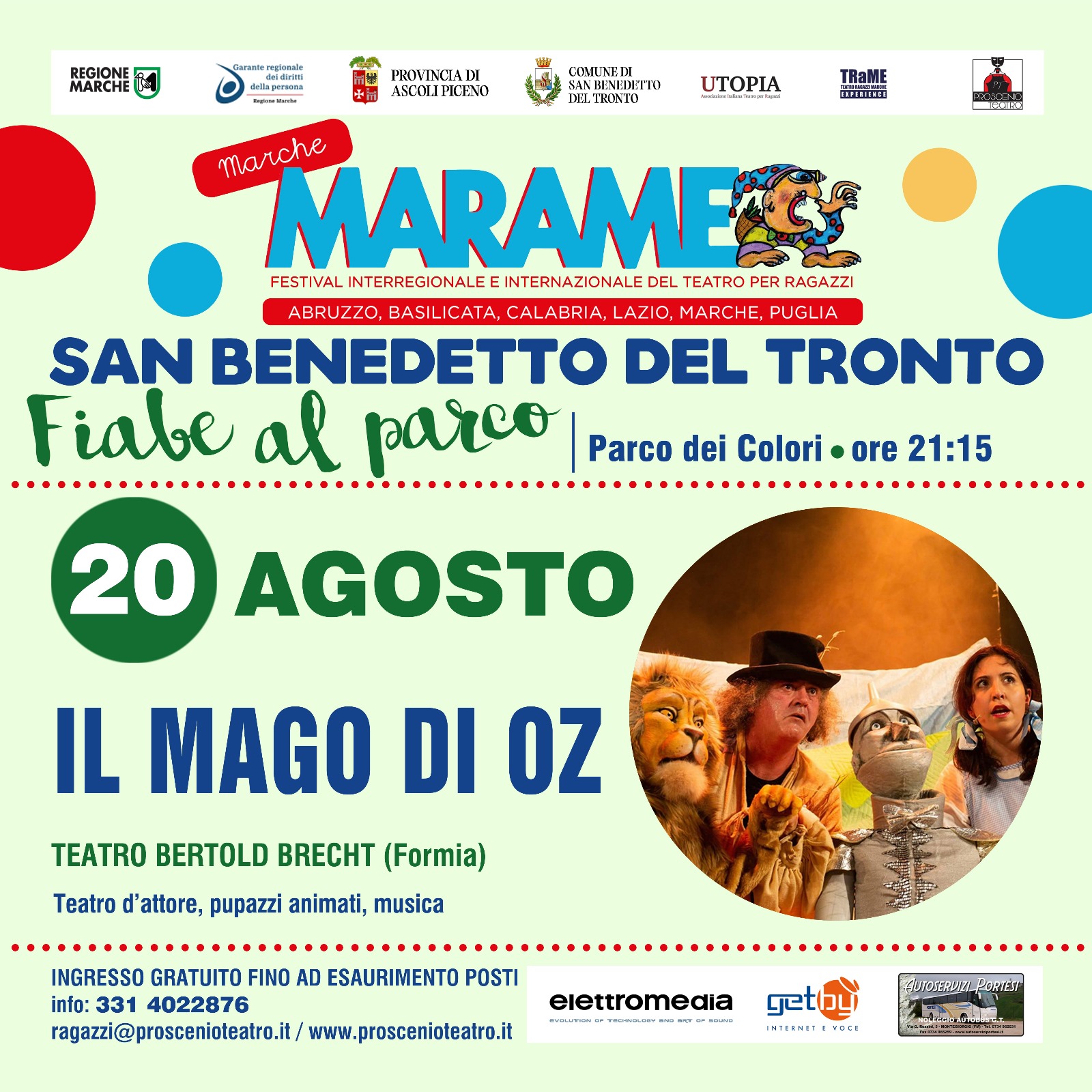 SAN BENEDETTO DEL TRONTO – Domani, Mercoledì 20 Agosto 2025, alle ore 21:15, presso il Giardino dei Colori – Quartiere Mare, in San Benedetto del Tronto, andrà in scena lo spettacolo teatrale “Il mago di Oz”, terzo appuntamento della rassegna “Fiabe al Parco” 2025. L’ingresso è gratuito.