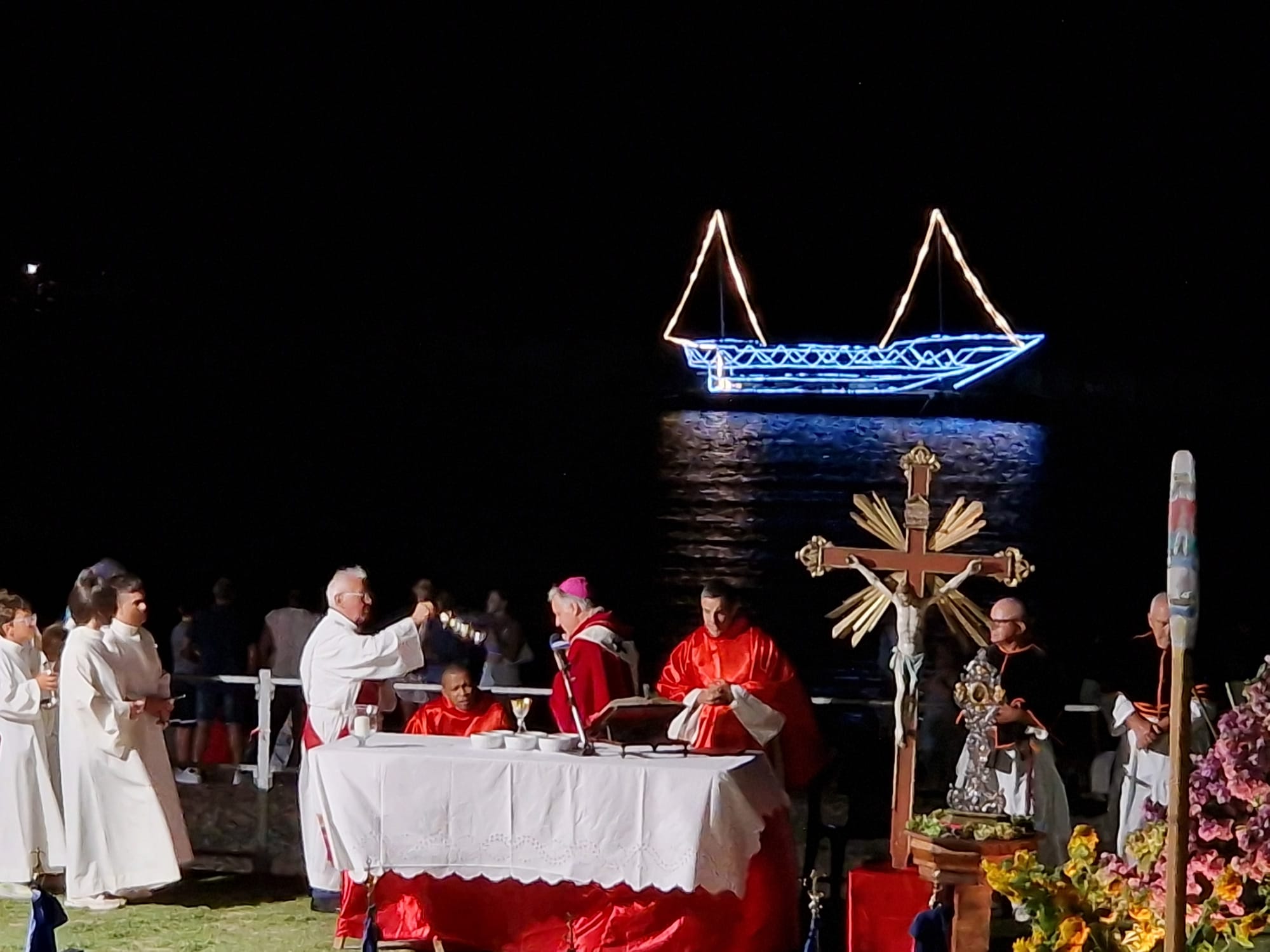 Alle ore 21:30, invece, inizieranno i festeggiamenti religiosi: si farà memoria del rinvenimento del corpo del Santo presso la Pieve di San Vastola Civita, da cui partirà la solenne e suggestiva processione notturna, con la reliquia del Santo, verso il mare. Ad impreziosire il cammino dei fedeli saranno le note del Corpo Bandistico Città di San Benedetto del Tronto. Il momento di preghiera si concluderà con la Santa Messa, presieduta dal vescovo Gianpiero Palmieri e concelebrata dal parroco don Roberto Traini, e la benedizione del mare, durante la quale verrà fatta memoria dei Caduti in mare e verrà lanciata in acqua una corona d’alloro in loro onore. onore.