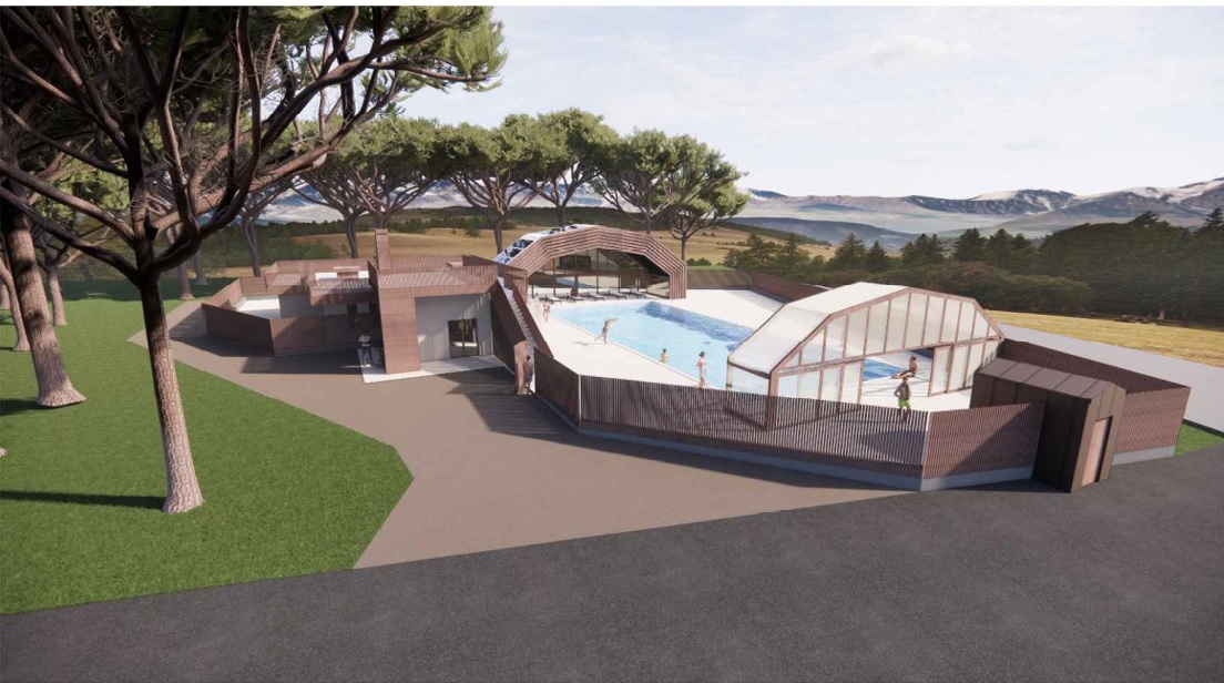 infiltrazioni nel locale tecnico e danni alla copertura degli spogliatoi. Il progetto prevede il risanamento delle parti compromesse, la sostituzione della pavimentazione, l’adeguamento degli impianti e la realizzazione di una nuova copertura telescopica in alluminio, con pannelli in vetro e policarbonato e impianto fotovoltaico integrato.