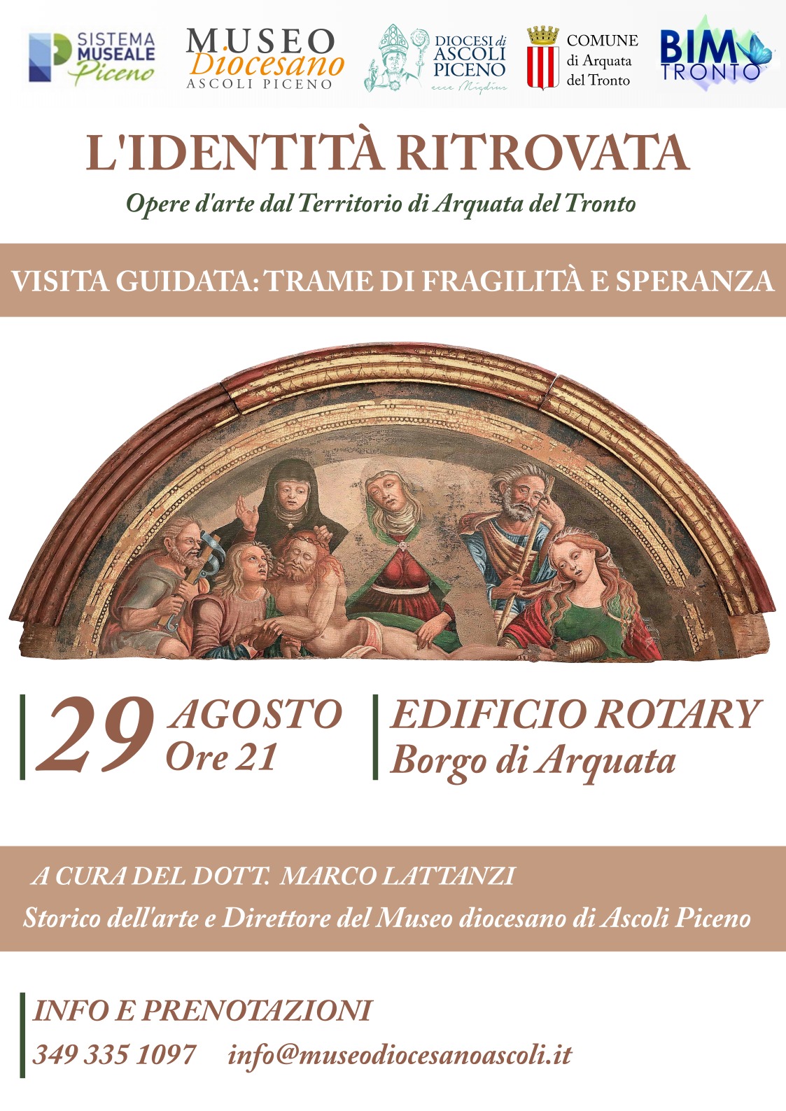 DIOCESI – Ad appena due mesi dall’inaugurazione della mostra “L’Identità ritrovata. Opere d’arte dal territorio di Arquata del Tronto” che in questo periodo ha già accolto numerosi visitatori e turisti, torna un nuovo appuntamento di approfondimento e valorizzazione.