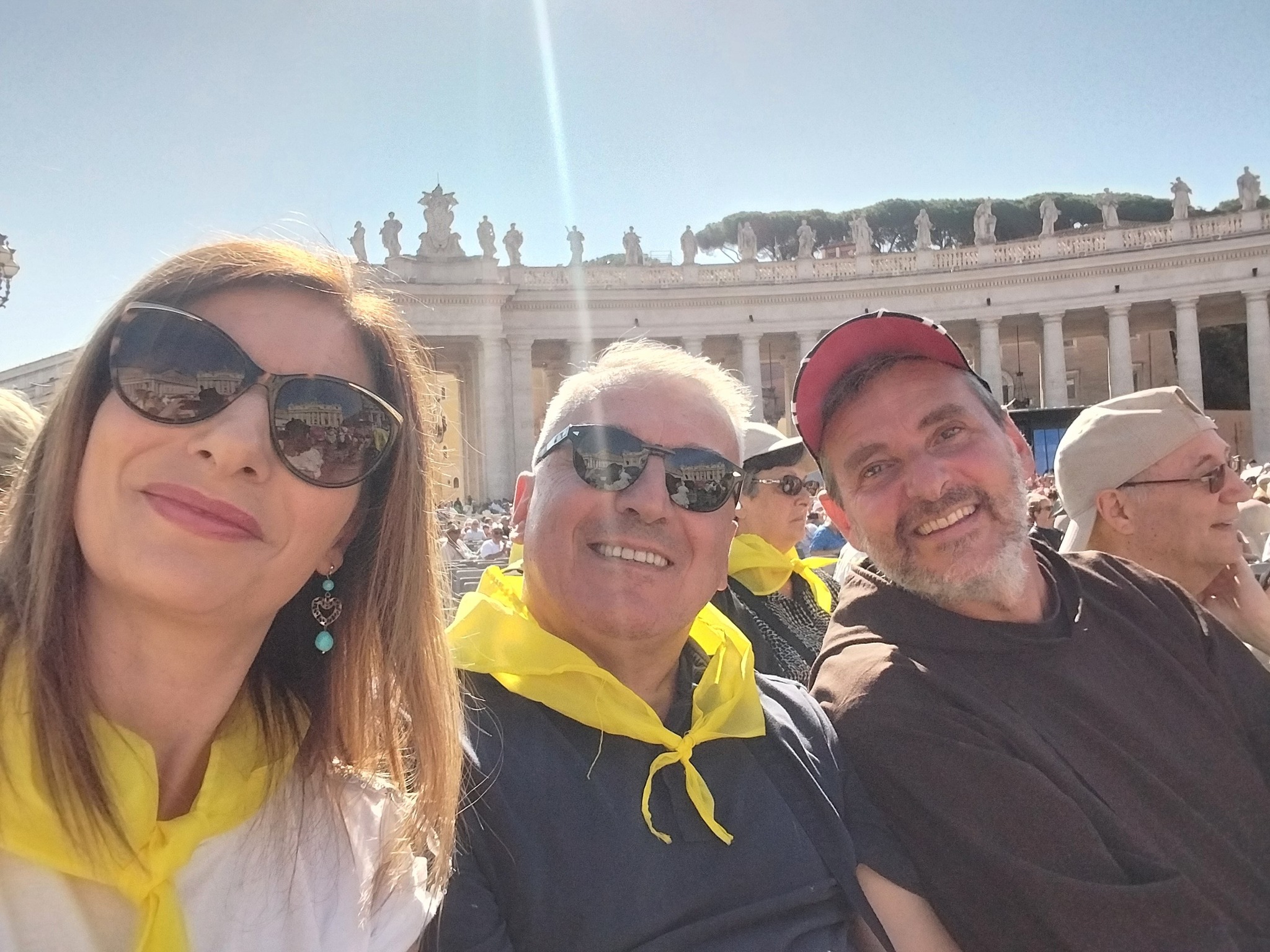 Accolti dai primi tiepidi raggi di sole, siamo giunti a Roma. Il Colonnato di Bernini ci si presenta in tutta la sua maestosità.