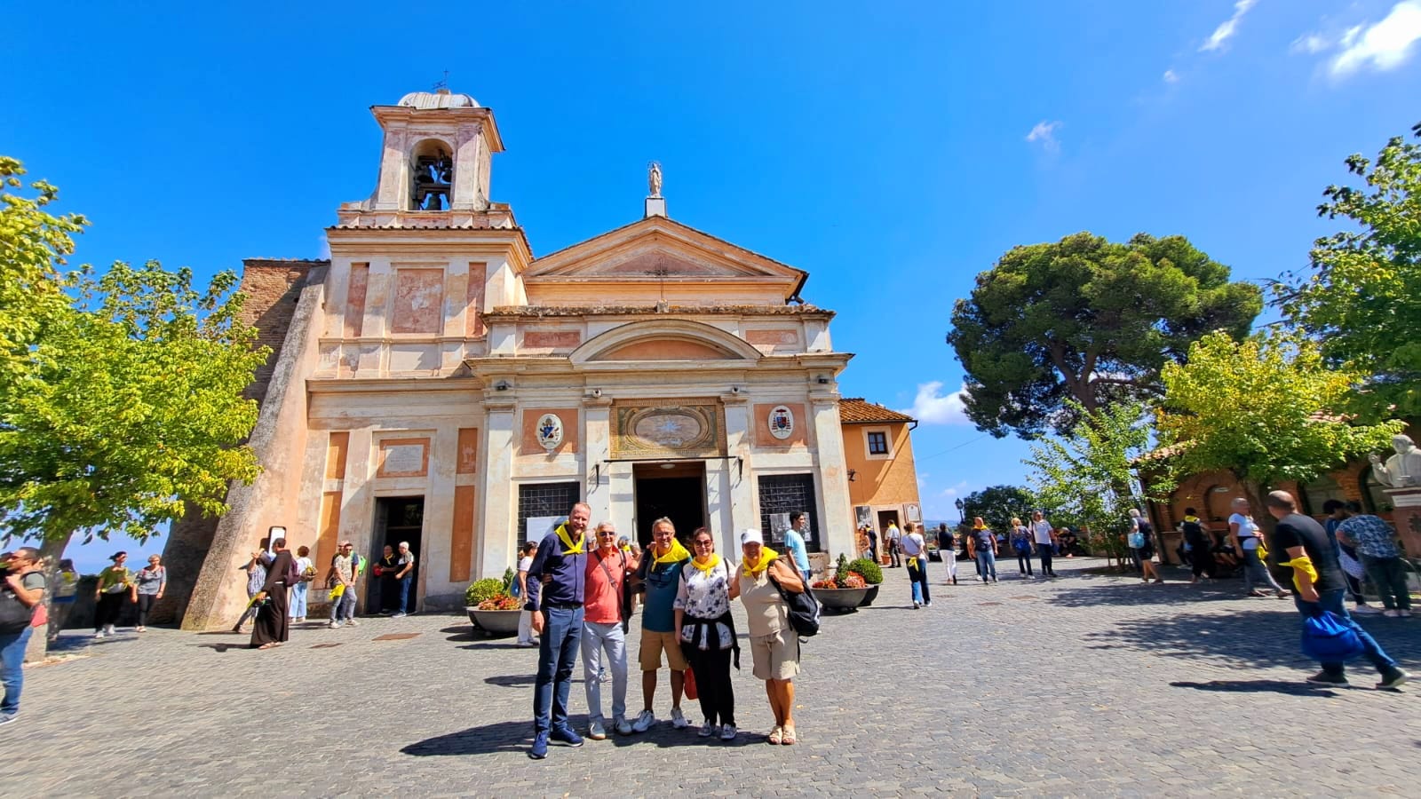 I fedeli delle Diocesi del Piceno hanno raggiunto il Santuario del Divino Amore. Dopo aver pranzato, ora si stanno godendo la bellezza del parco che lo circonda.