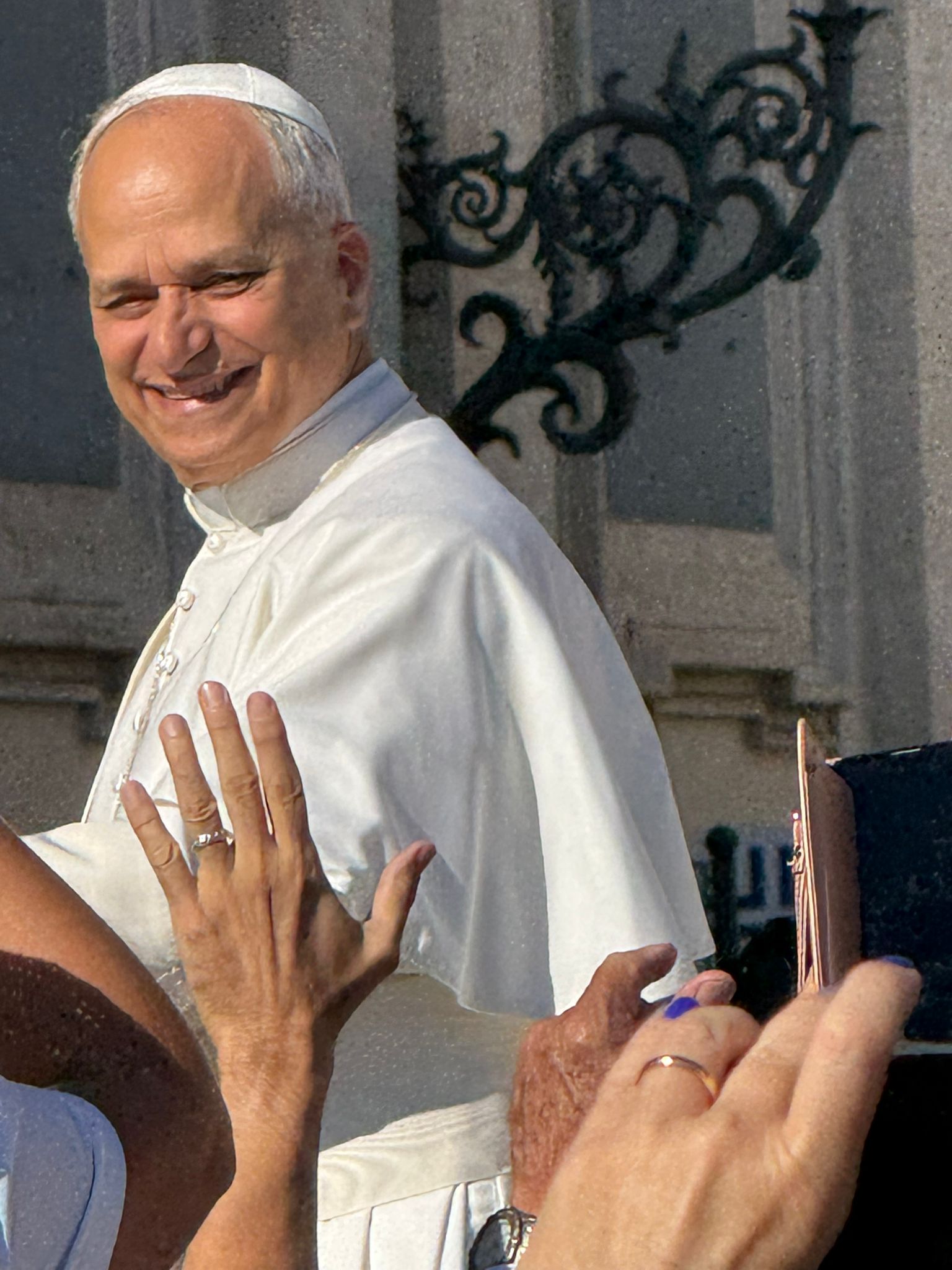 Papa Leone XIV saluta i fedeli in piazza San Pietro.