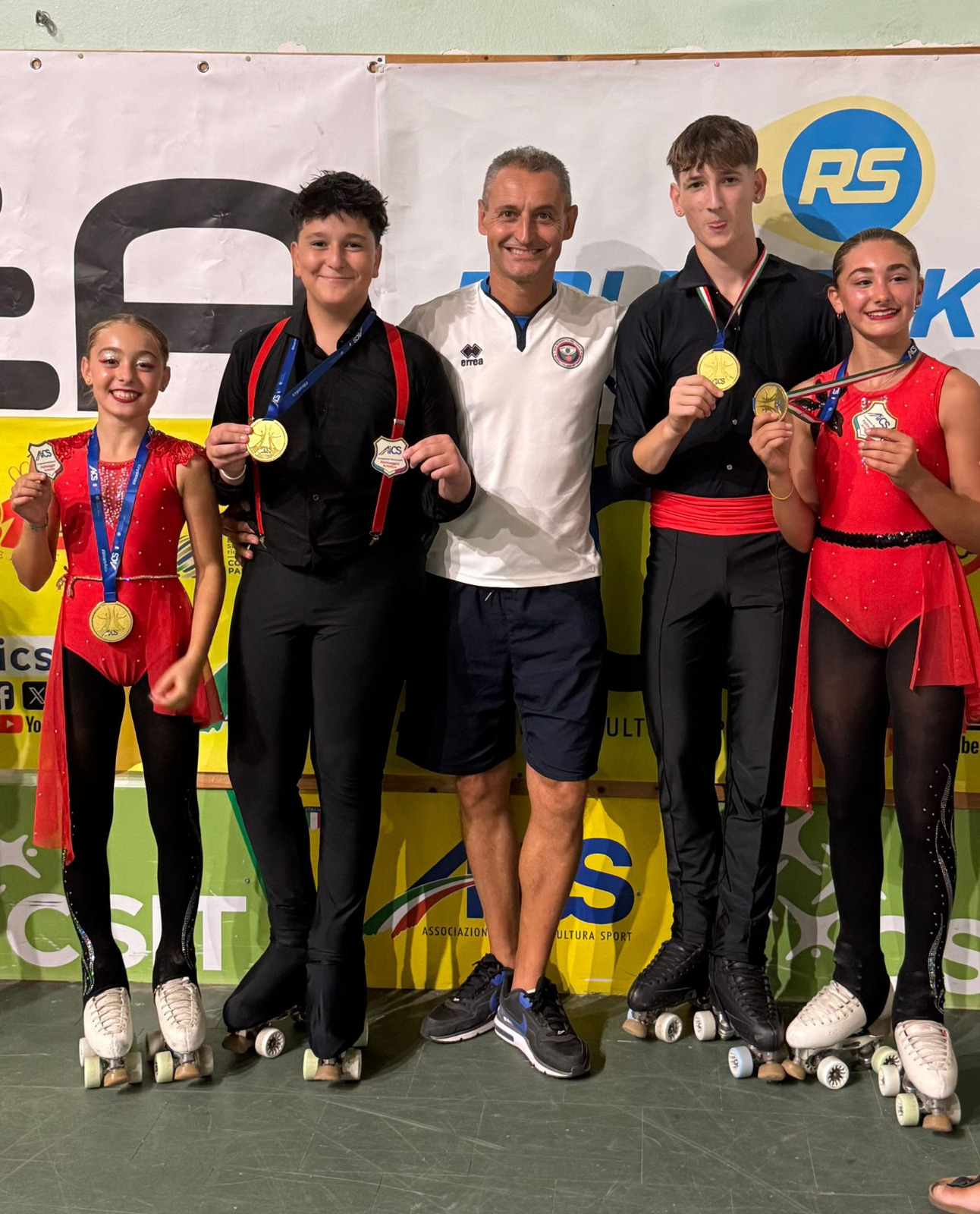SAN BENEDETTO DEL TRONTO – Trionfo per la Diavoli Verde Rosa ai Campionati Nazionali AICS di Pattinaggio Artistico, svoltisi a Misano dal 25 agosto al 7 settembre. La rappresentativa sambenedettese ha conquistato due titoli nazionali e numerose medaglie in ben tre specialità, confermando l’eccellente livello tecnico del gruppo agonistico.