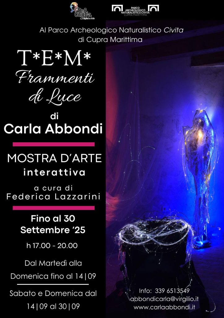 CUPRA MARITTIMA – Presso il Parco Archeologico Naturalistico Civita di Cupra Marittima è aperta l’esperienza d’arte interattiva dell’artista Carla Abbondi.