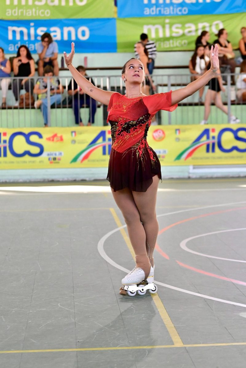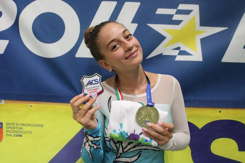 MONTEPRANDONE – Giusy Traini, giovane atleta di 21 anni dell’ASD Roller Cento, ha recentemente conquistato la medaglia d’oro nella categoria Adult A – specialità inline ai Campionati Nazionali AICS di Misano Adriatico. Un risultato prestigioso che premia il suo impegno e dà lustro a una delle società storiche del pattinaggio artistico locale. L’abbiamo incontrata per farci raccontare qualcosa di più su di lei, sul suo percorso sportivo e sulle emozioni vissute durante questa importante competizione.