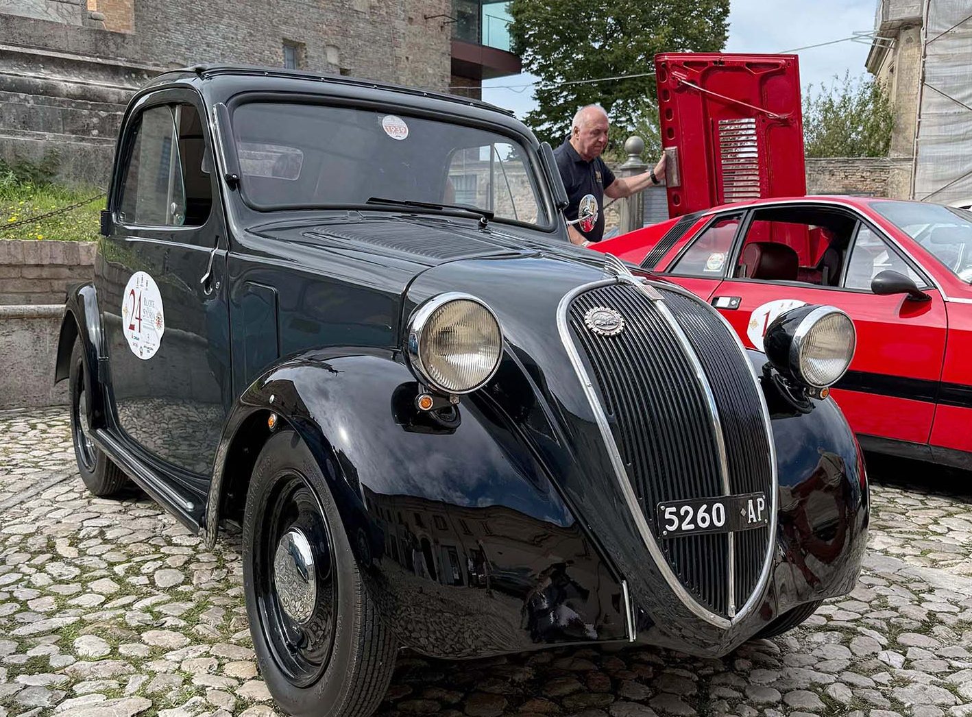 Con il percorso di avvicinamento, orchestrato anche in questa occasione con percorsi differenti da Ascoli Piceno (partenza da Piazza della Stazione) e da Fermo (dal Piazzale Azzolino), ha permesso ai 30 equipaggi partecipanti di godere di due giornate alla scoperta di questo piccolo centro capace di offrire sorprese, momenti culturali e peculiarità che rendono nel migliore dei modi lo scopo di un turismo lento e ricco di stimoli. Presenti una Lancia Fulvia Sport Zagato del 1968, la spettacolare Jaguar E Type del 1969, un’Alfa Romeo Spider del 1963 e la sempre apprezzata Fiat 500A Topolino del 1939, poi Fiat, Triumph, Abarth, Citroen, Ferrari, Chevrolet, Mercedes, Volvo, Peugeot e Matra.