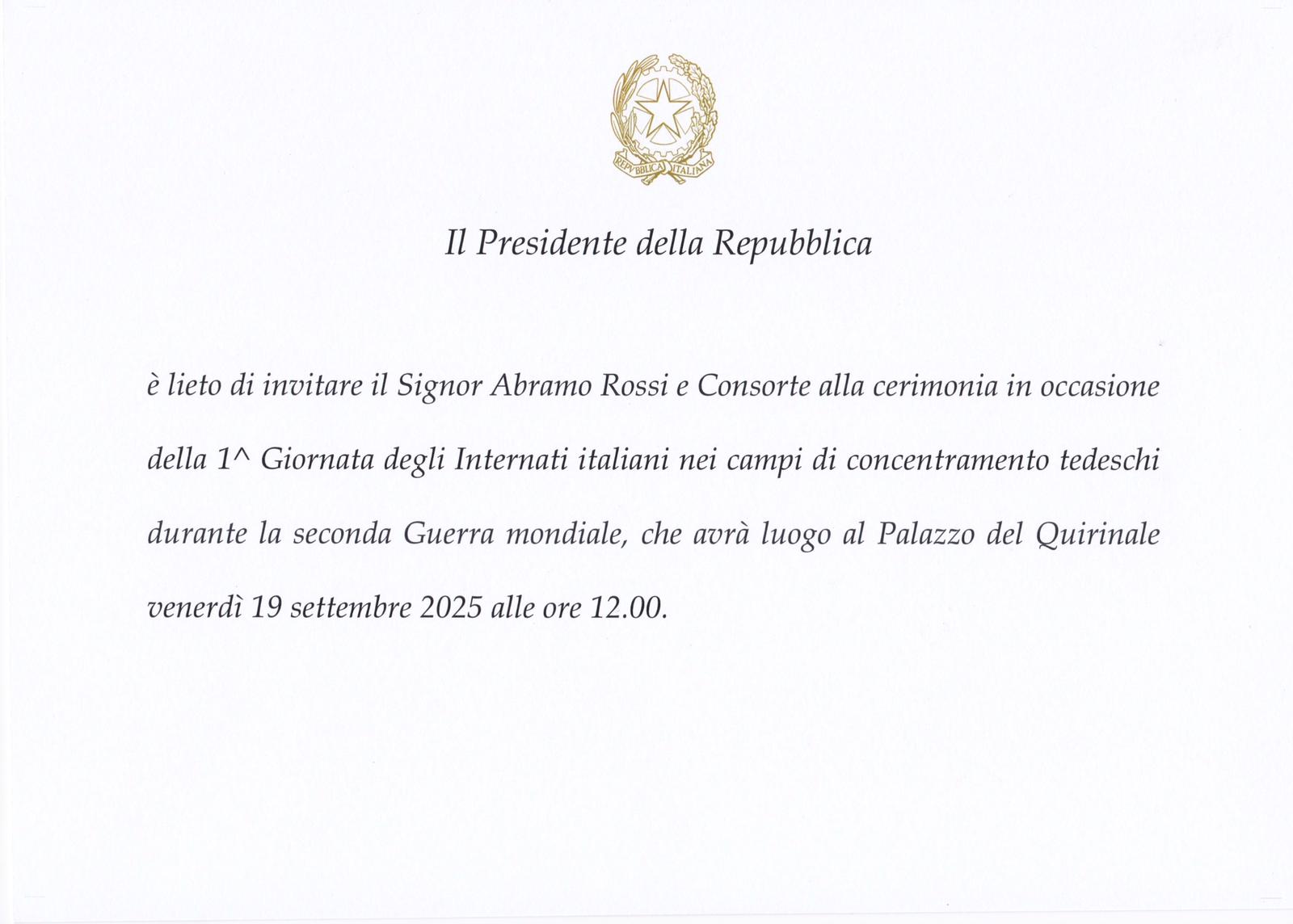 Si tratta della prima celebrazione ufficiale, dopo il riconoscimento della Legge n. 6 del 13 Gennaio 2025, con la quale la Repubblica Italiana istituisce la speciale ricorrenza per il 20 Settembre di ciascun anno, giorno nel quale Hitler modificò la condizione dei prigionieri di guerra italiani, catturati dopo l’armistizio dell’8 Settembre, in quella di internati militari. Il fine dell’iniziativa – come sancito nell’art.1 della legge stessa – è quello di “conservare la memoria dei cittadini italiani, militari e civili, internati nei campi di concentramento, ove subirono violenze fisiche e morali e furono destinati al lavoro coatto a causa del proprio rifiuto di collaborare con lo Stato Nazionalsocialista e con la Repubblica Sociale Italiana, dopo l’armistizio dell’8 Settembre 1943″. La giornata ha anche lo scopo di “onorare la memoria di tutti i militari italiani uccisi a causa di tale rifiuto“.