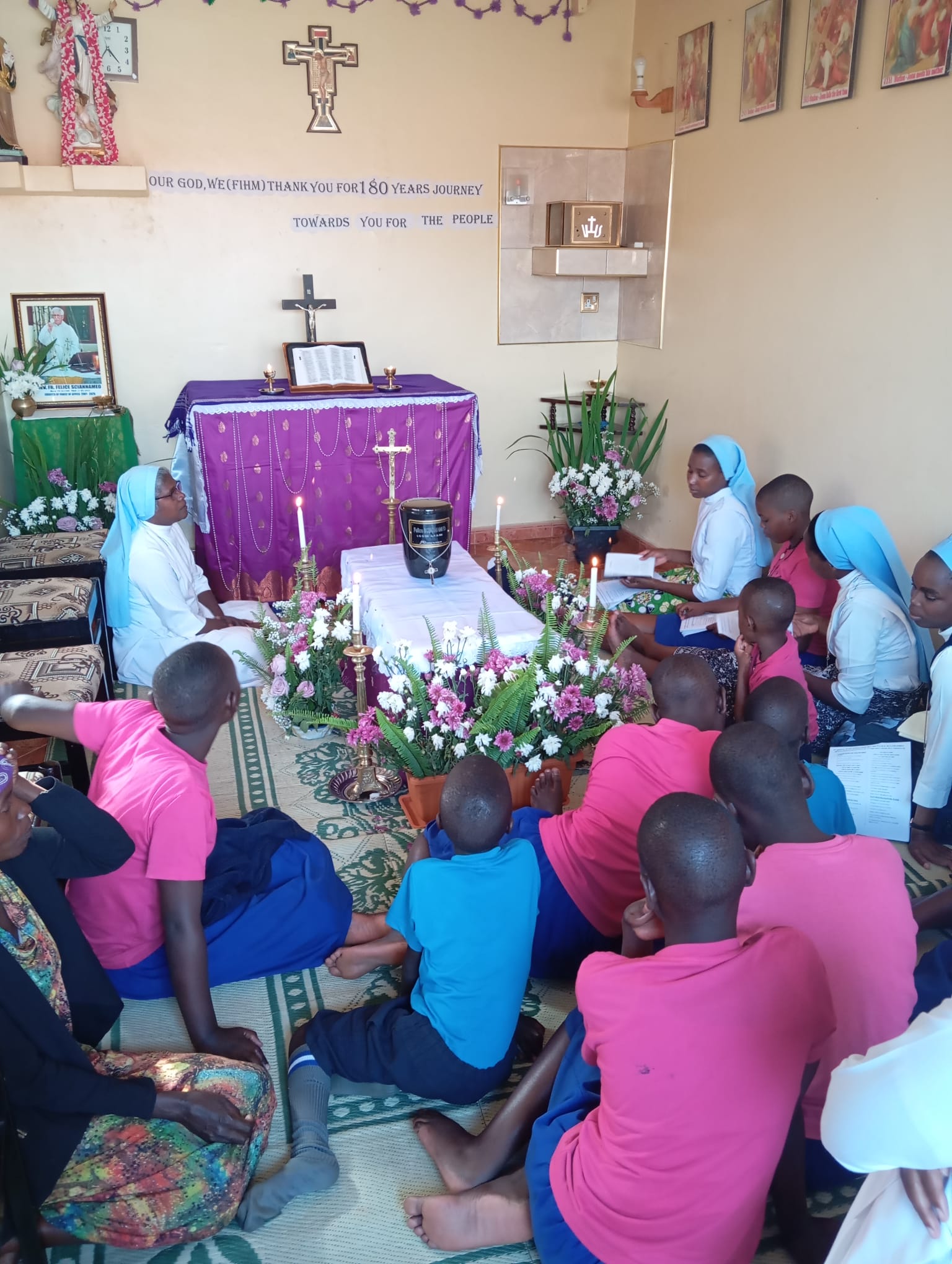 Accolti dalle suore all’aeroporto di Entebbe, la delegazione ha partecipato a una veglia di preghiera nell’orfanotrofio Comboni House di Bbiina, voluto e costruito da Padre Felice. Qui bambini, ex ospiti, famiglie e amici hanno vegliato in preghiera fino al pomeriggio, quando si è svolta la prima celebrazione liturgica nella vicina chiesa parrocchiale.