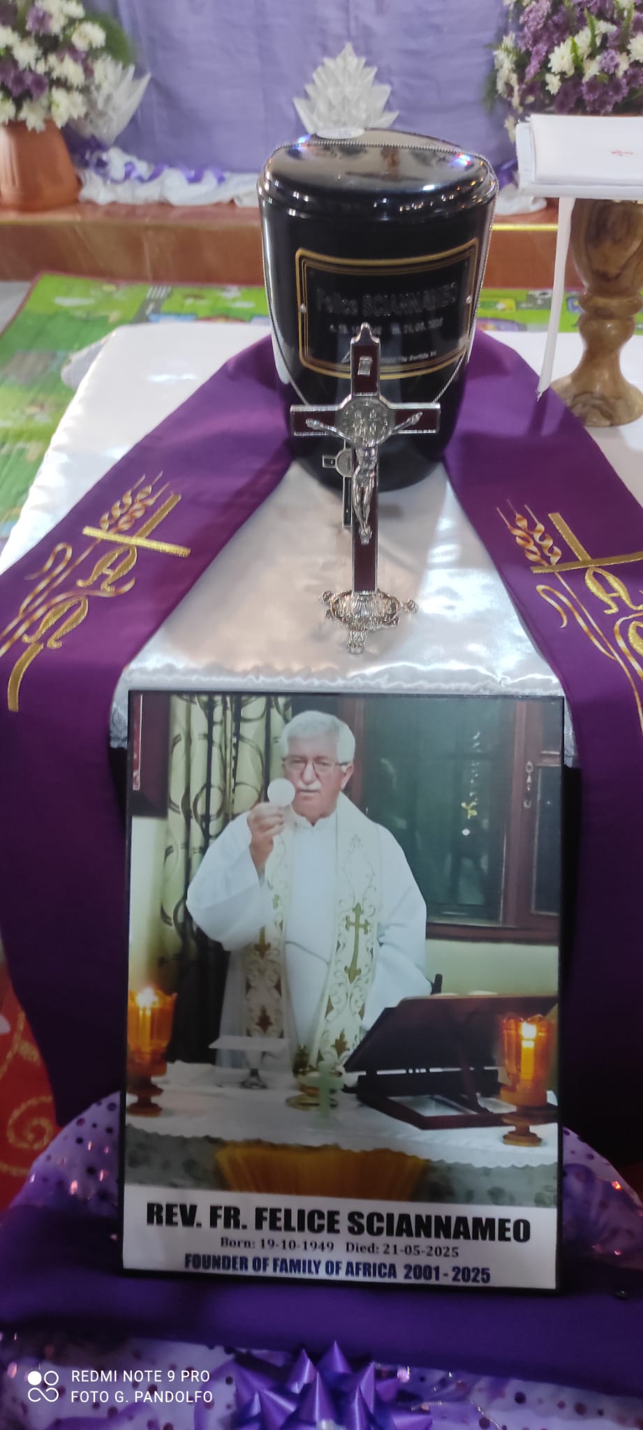 Dal 1° al 6 settembre una delegazione italiana di Famiglia d’Africa ha accompagnato le ceneri del missionario nella sua terra amata. Facevano parte del gruppo suo fratello Donato Sciannameo, il nipote Domenico Condito (nominato da Padre Felice nuovo presidente dell’associazione), il vicepresidente Giovanni Pandolfo con la moglie Paola Russo, e Bianca Bruni.