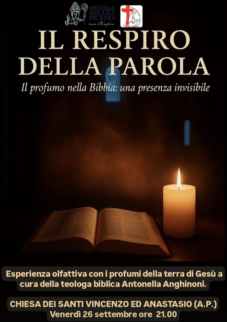 L’incontro si terrà venerdì 26 settembre alle ore 21.00 presso la Chiesa dei Santi Vincenzo ed Anastasio (Ascoli Piceno) e offrirà ai partecipanti una suggestiva esperienza olfattiva legata ai profumi della terra di Gesù.