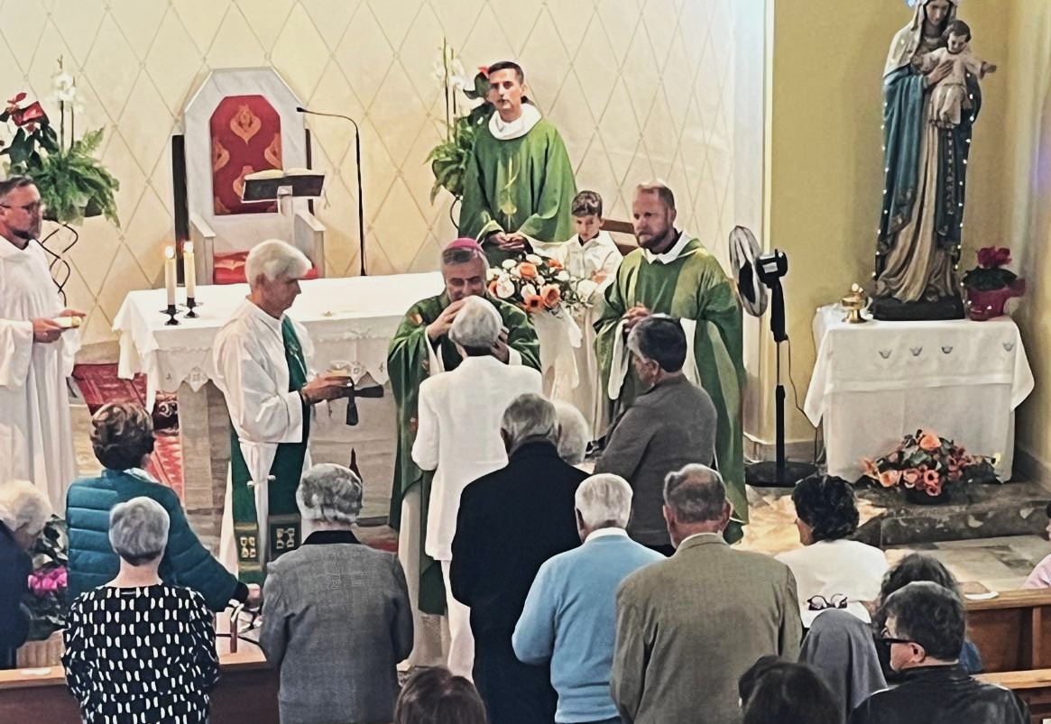 All’inizio della S. Messa, un membro del Consiglio Pastorale Parrocchiale ha portato il saluto al vescovo a nome della parrocchia, ringraziandolo per la sua presenza alla festa dedicata agli anziani, radici di ogni comunità. Il vescovo ha risposto che è bello che una comunità dedichi una festa agli anziani, si riunisca, preghi per loro e celebri un sacramento (l’Unzione degli infermi), invocando lo Spirito Santo per sostenerli. Ha poi aggiunto che, in questa Celebrazione Eucaristica, la preghiera era rivolta anche a chi soffre per una malattia.