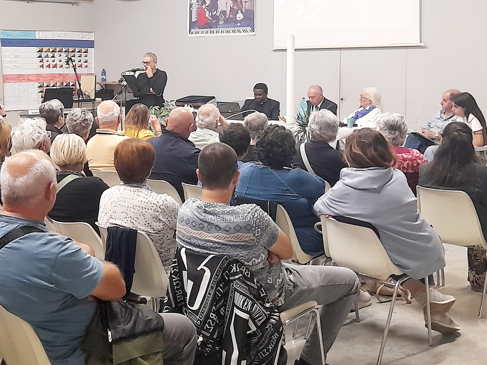 La serata è entrata nel vivo nella seconda parte dell’appuntamento, quando sono state lette, interpretate e commentate alcune pericopi dell’opera. Tre i momenti più significativi a cui ha dato voce l’ottimo Gianluca Paliotti, che è riuscito a catturare l’attenzione del pubblico presente e ad interessarlo alle riflessioni dell’autore e al messaggio di speranza offerto dalle storie narrate.