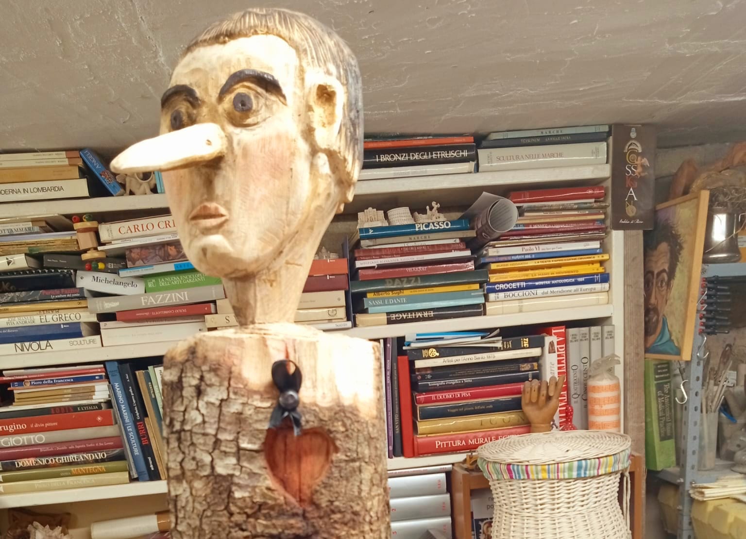 All’evento sarà presente anche l’artista Luciano Capriotti, il quale per l’occasione esporrà un gruppo scultoreo di 38 bronzi dedicati a Pinocchio, che sono reduci da una lunga mostra durata quattro anni allestita a Lucca, Pistoia e a Collodi. Queste le parole dello scultore: “Per me è stata una coincidenza fortunata. Questa estate, parlando con il sindaco di Grottammare della mia esposizione in Toscana delle opere su Pinocchio, ho saputo che l’associazione ‘Paese Alto di Grottammare’ aveva curato la traduzione del testo pinocchiesco in vernacolo piceno e da lì è nato tutto. Ci tengo a sottolineare che il primo disegnatore che in assoluto ha immaginato con la sua fervida fantasia il nostro Pinocchio, è stato il grande Enrico Mazzanti nel 1883. La mia è una rivisitazione in termini scultorei – credo la prima al mondo – proprio di quelle antiche illustrazioni comparse nella prima edizione di Pinocchio. La favola di Pinocchio è il libro che dovrebbero leggere o rileggere tutti: è la storia di un desiderio, quello di passare dall’essere un burattino di legno all’essere un bambino vero. Oggi purtroppo, a causa della guerra, molti bambini non possono più leggere Pinocchio. Ho realizzato allora una scultura in legno del nostro amato burattino, che porta sul cuore il segno del lutto. Lo dedico ai bimbi ucraini, a quelli della Striscia di Gaza e a tutti i piccoli che sono stati uccidi o derubati della loro infanzia a causa della guerra. In questo momento il mio pensiero non può che andare a loro”.