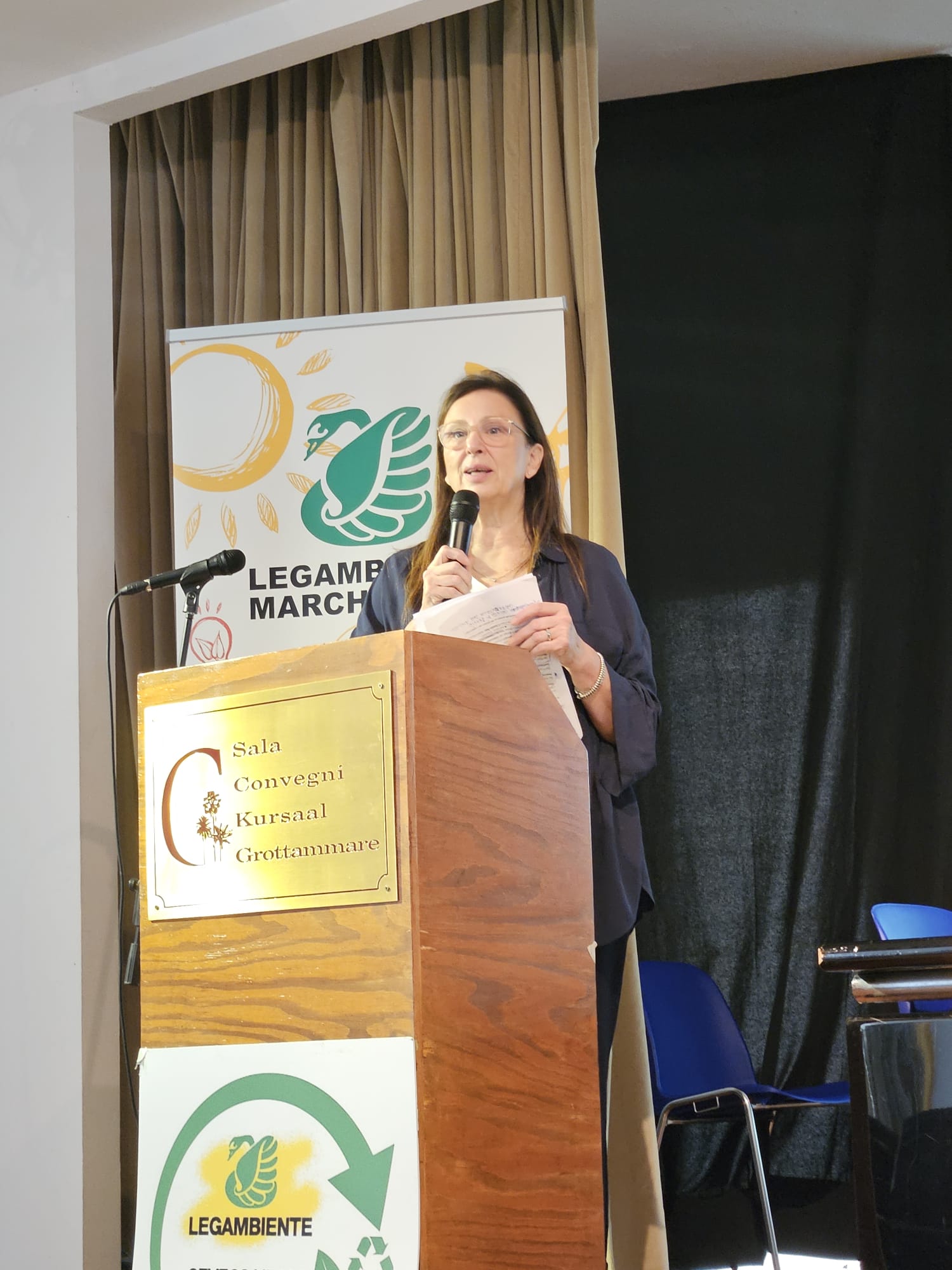 GROTTAMMARE – La seconda e ultima giornata del Forum sull’acqua “Sorella Acqua” (leggi qui il resoconto della prima giornata FOTO Grottammare, “Sorella Acqua”, Vescovo Palmieri: “L’acqua è vita e rinascita“, il racconto della prima giornata) al Kursaal si è aperta con i consueti saluti della presidente di Legambiente Circolo Verde Civico di Grottammare, Antonella Romoli Venturi. Il Tenente Colonnello Aldo Papotto, subcommissario per la bonifica delle discariche e dei siti contaminati dell’Arma dei Carabinieri, è intervenuto illustrando alcuni famosi siti di discariche abusive, poi sequestrati e bonificati, infine restituiti ai cittadini come spazi verdi per l’aggregazione e il benessere delle comunità. “Malagrotta è la discarica più grande d’Europa. Il nostro lavoro è restituire ai cittadini il verde bonificato. Operiamo anche nella Terra dei Fuochi a tutela dell’ambiente e della salute. Oggi ci sono 34.000 siti di discariche abusive con contaminazioni ambientali, purtroppo collegati a malattie oncologiche”.