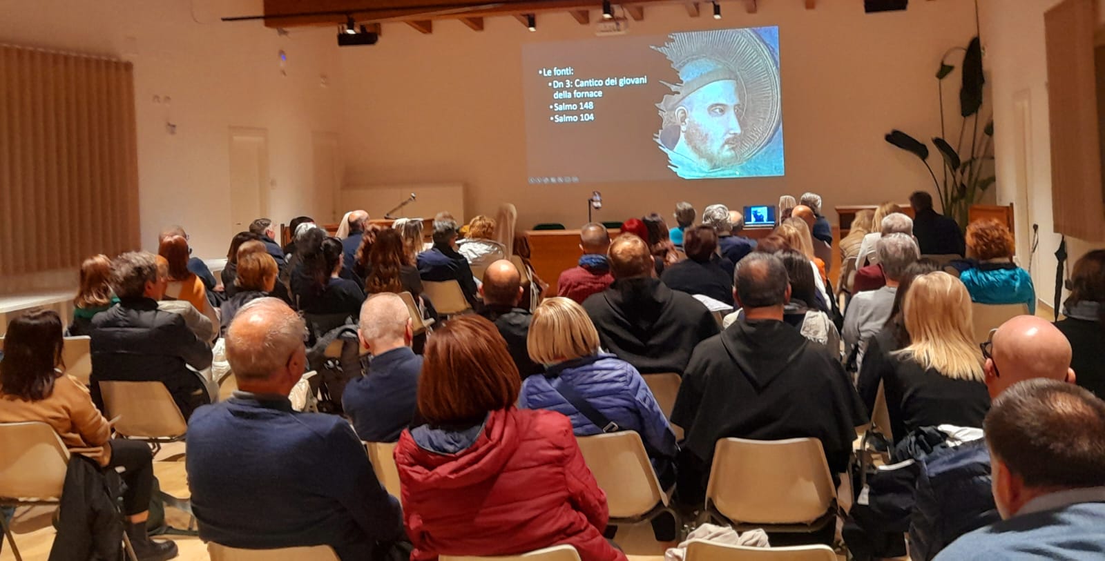 Giovedì 2 Ottobre, sfidando il vento gelido e una temperatura decisamente invernale, una piccola folla prendeva posto nel salone del Monastero, disponendosi ad ascoltare una meditazione sul Cantico delle Creature, in occasione dell’VIII centenario della sua composizione da parte di Francesco d’Assisi.