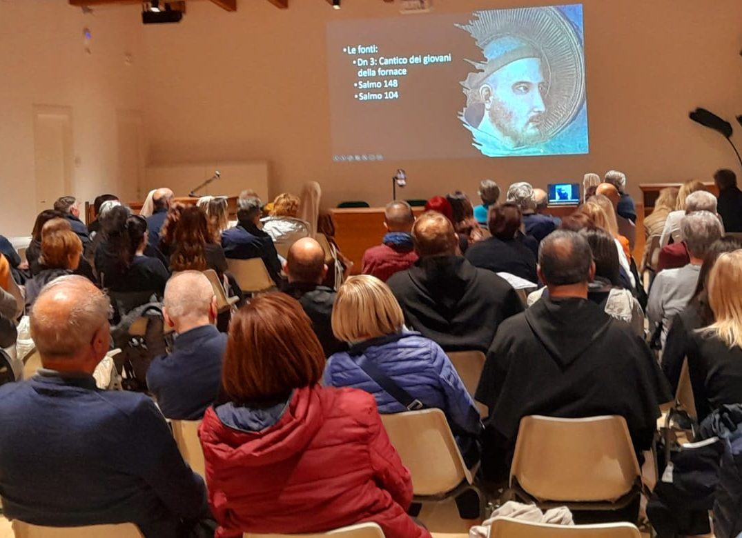 Giovedì 2 Ottobre, sfidando il vento gelido e una temperatura decisamente invernale, una piccola folla prendeva posto nel salone del Monastero, disponendosi ad ascoltare una meditazione sul Cantico delle Creature, in occasione dell’VIII centenario della sua composizione da parte di Francesco d’Assisi.
