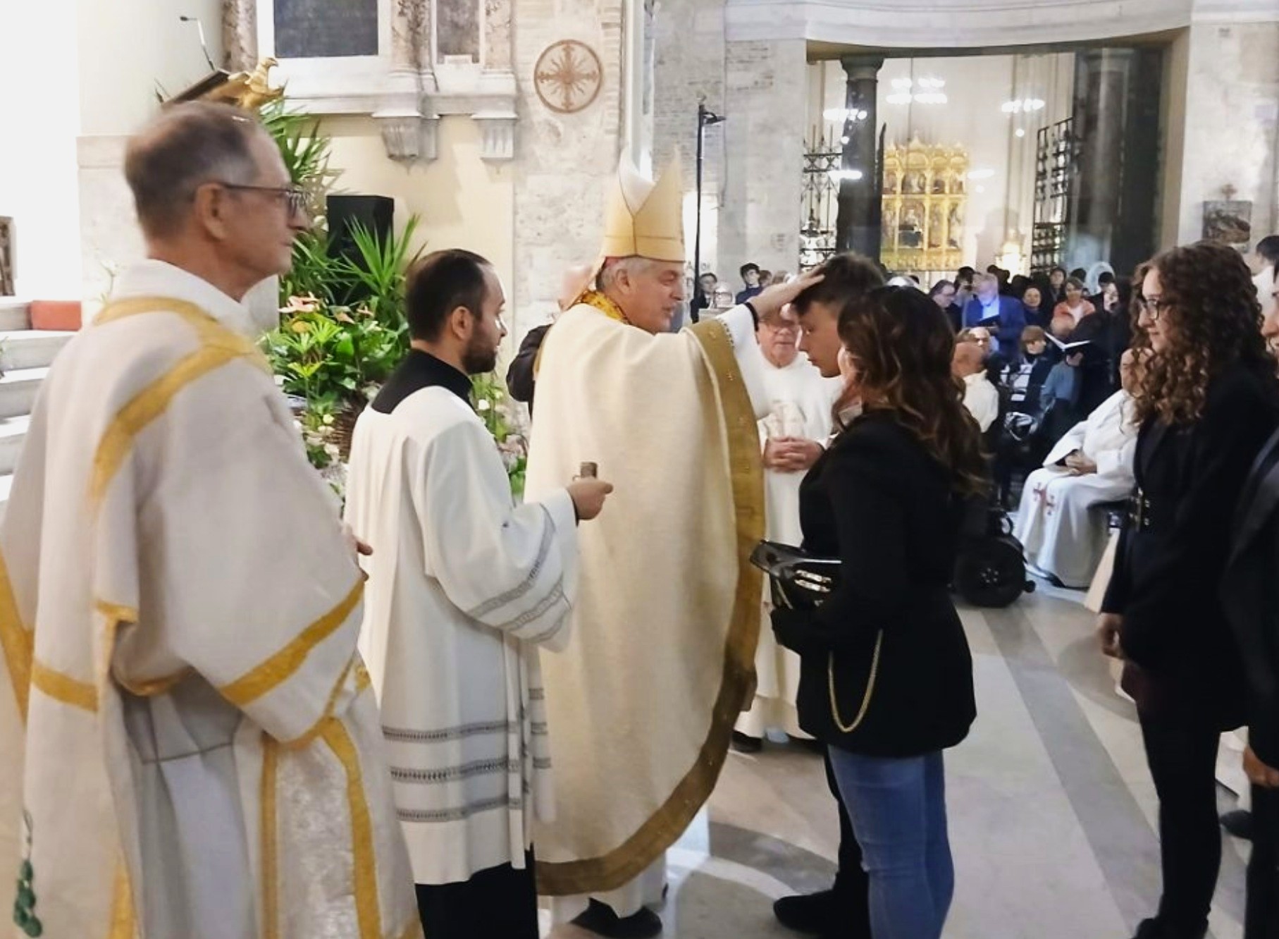 La celebrazione serale è stata presieduta dall’arcivescovo diocesano, monsignor Gianpiero Palmieri, assistito dal cerimoniere mons. Lino Arcangeli e dal concelebrante principale, il parroco della cattedrale don Luigi Nardi, nonché numerosi presbiteri della diocesi ascolana. Alla cerimonia hanno partecipato alcune autorità civili, tra cui il sindaco Marco Fioravanti, il senatore Guido Castelli e il comandante della Polizia Locale Patrizia Celani. Erano inoltre presenti le confraternite del Santissimo Sacramento, della Madonna delle Grazie, Orazione e Morte, e l’associazione Unitalsi (Unione Nazionale Italiana Trasporti Ammalati a Lourdes e Santuari Internazionali), insieme a centinaia di fedeli. Durante la celebrazione, numerosi giovani hanno ricevuto il sacramento della Confermazione, rafforzando il loro impegno nella fede. La cerimonia è stata un momento di grande spiritualità e comunione per tutti i presenti.