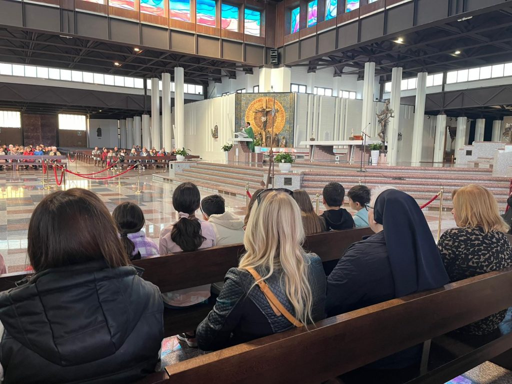 Subito dopo, davanti all’urna che custodisce il corpo del Santo, don Mirko ha catturato l’attenzione dei presenti con un racconto coinvolgente della vita di San Gabriele dell’Addolorata, ricco di aneddoti e riflessioni che hanno saputo toccare il cuore di bambini e adulti.