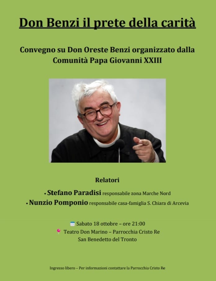 SAN BEENDETTO DEL TRONTO – Nell’anno in cui ricorre il centenario della nascita di don Oreste Benzi, l’associazione “Papa Giovanni XXIII“ organizza nelle Diocesi del Piceno un convegno dal titolo “Don Benzi, il prete della carità“.
