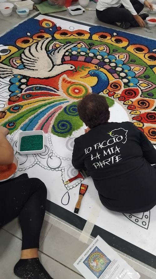 La responsabile artistica dell’Associazione Colibrì di Giulianova, Barbara, ha illustrato i progetti dell’associazione: “I lavori realizzati oggi serviranno a sostenere iniziative in Senegal e Congo, dove stiamo costruendo scuole, strutture sanitarie e pozzi. In questa occasione abbiamo disegnato una colomba che guarda un pavone: simboli rispettivamente della fede cattolica e di quella induista. È un messaggio di unità e collaborazione.”