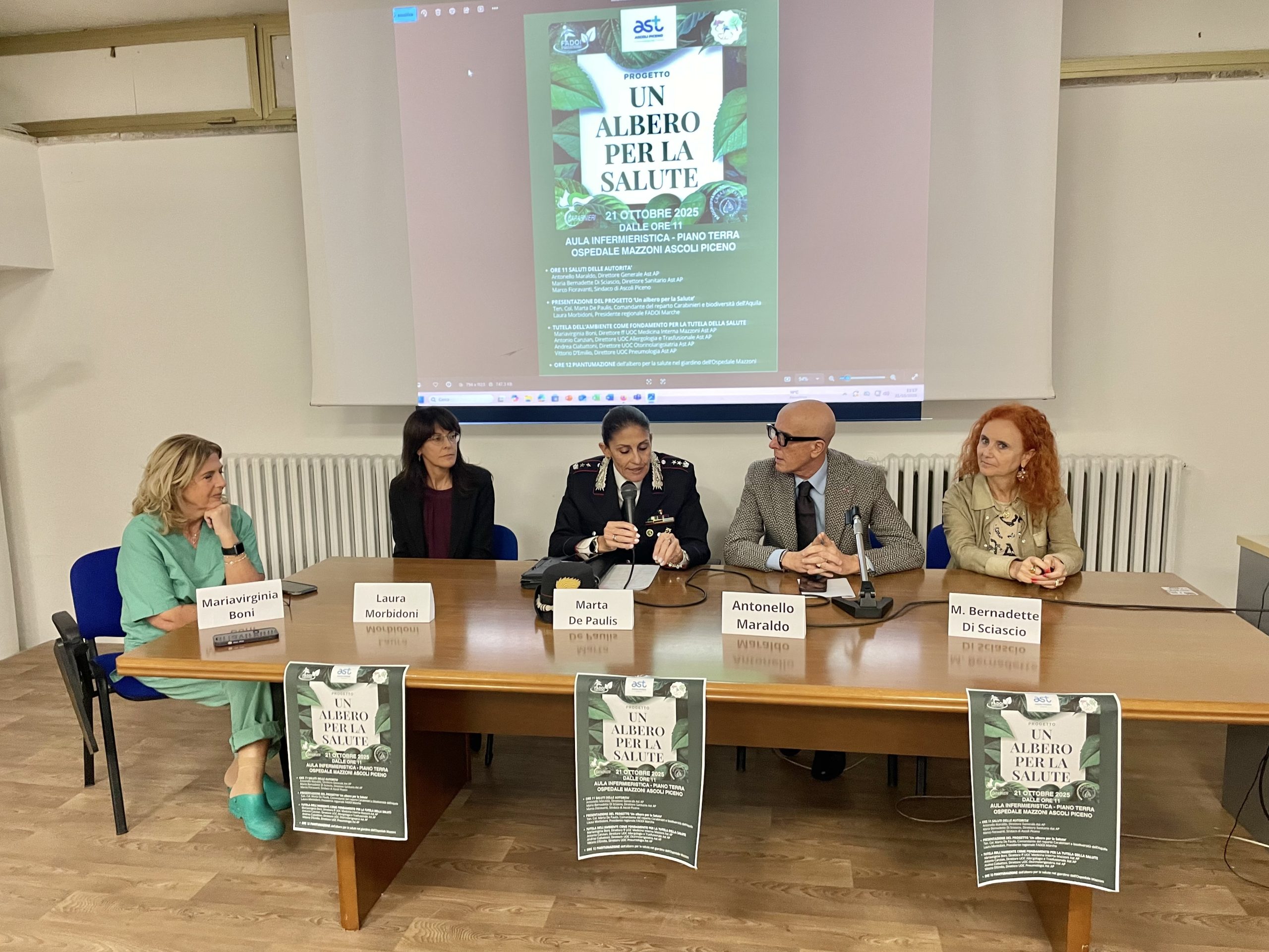 Il Mazzoni sarà l’unica struttura ospedaliera marchigiana a far parte dell’edizione 2025 del progetto ‘Un albero per la salute’ che ha visto protagonisti ben 38 nosocomi italiani dislocati su tutto il panorama nazionale. Nello specifico parliamo di un’iniziativa voluta dalla Fadoi (Federazione delle associazioni dei dirigenti ospedalieri) e dal reparto biodiversità dei Carabinieri. Stamattina nel giardino dell’ospedale di Ascoli Piceno è avvenuta la messa a dimora di un piccolo leccio. Un gesto semplice, ma significativo, volto a simboleggiare la stretta interconnessione tra la salute umana, la salute animale e la salute dell’ambiente. Esattamente secondo quanto sancito dall’approccio ‘One Health’ (Una sola salute), un metodo integrato che propone politiche e strategie per affrontarle tali questioni congiuntamente e migliorare il pianeta in cui viviamo. “È un vero piacere aver aderito a questo progetto che coniuga l’impegno per la salute delle persone con quello per la salute dell’ambiente – sostiene il dottor Antonello Maraldo, direttore generale dell’Ast di Ascoli Piceno -. La messa a dimora dell’albero nel giardino dell’ospedale Mazzoni rappresenta un atto simbolico di promozione della salute pubblica. Ringrazio i promotori per aver coinvolto anche la nostra azienda sanitaria in un’iniziativa che mette insieme sostenibilità e prevenzione”. Al suo fianco c’erano il direttore sanitario dottoressa Maria Bernadette Di Sciascio, la presidente Fadoi Marche Laura Morbidoni, il direttore dell’unità operativa complessa di medicina interna Mariavirginia Boni, i rispettivi direttori di allergologia, trasfusionale, otorinolaringoiatria e pneumologia, Antonio Canzian, Andrea Ciabattoni e Vittorio D’Emilio.