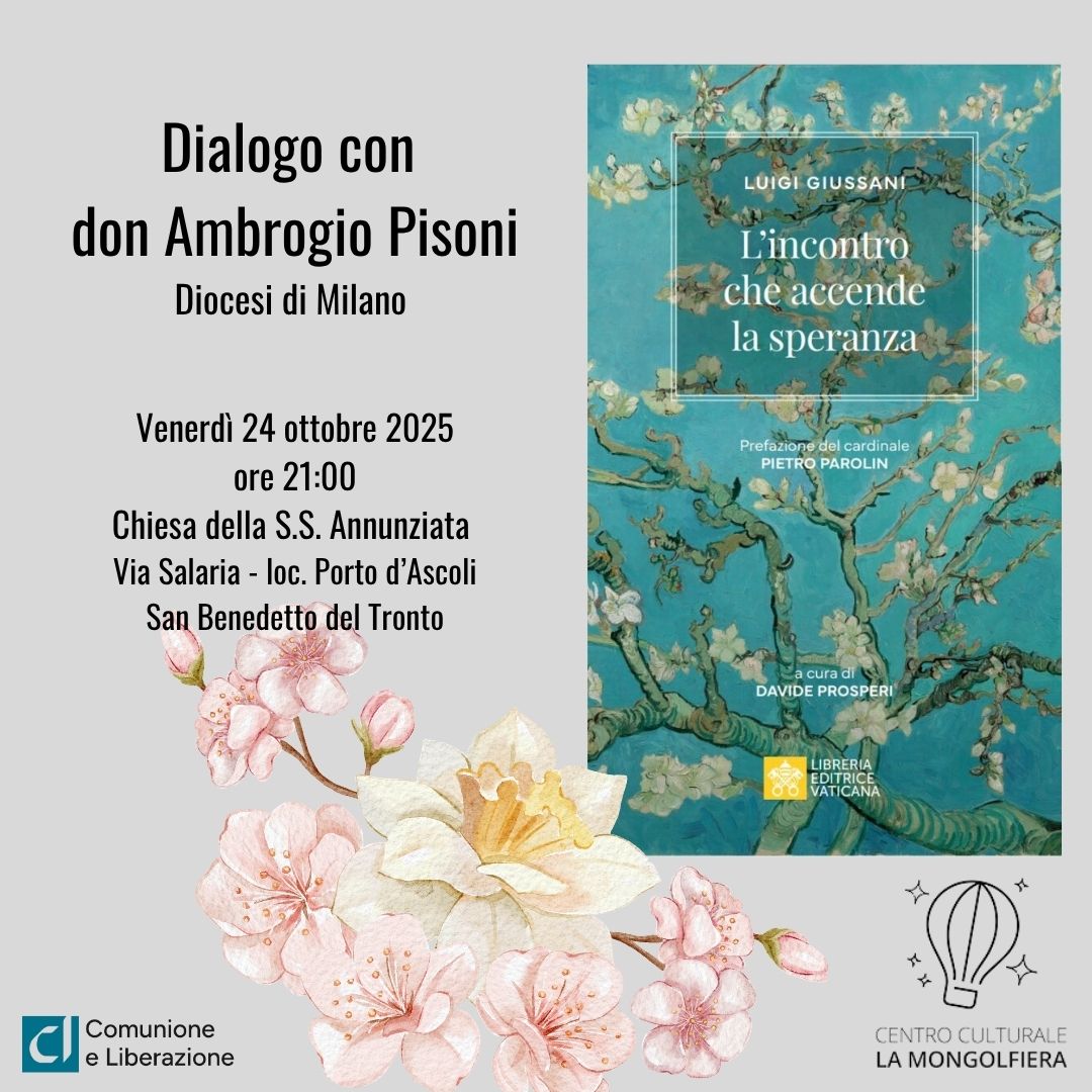 SAN BENEDETTO DEL TRONTO – Il Centro culturale La Mongolfiera e la comunità di Comunione e Liberazione, in collaborazione con la Parrocchia S.S. Annunziata di Porto d’Ascoli, propongono per venerdì 24 ottobre 2025 alle ore 21.00 un incontro con don Ambrogio Pisoni, sacerdote della Diocesi di Milano.