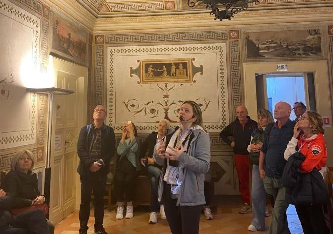 Nel corso della visita, l’assessore Spaccasassi ha accompagnato il gruppo anche all’interno del Palazzo Municipale, dove i partecipanti hanno potuto ammirare da vicino le eleganti sale storiche, rimanendo piacevolmente sorpresi dalla loro bellezza e dal fascino autentico degli ambienti.