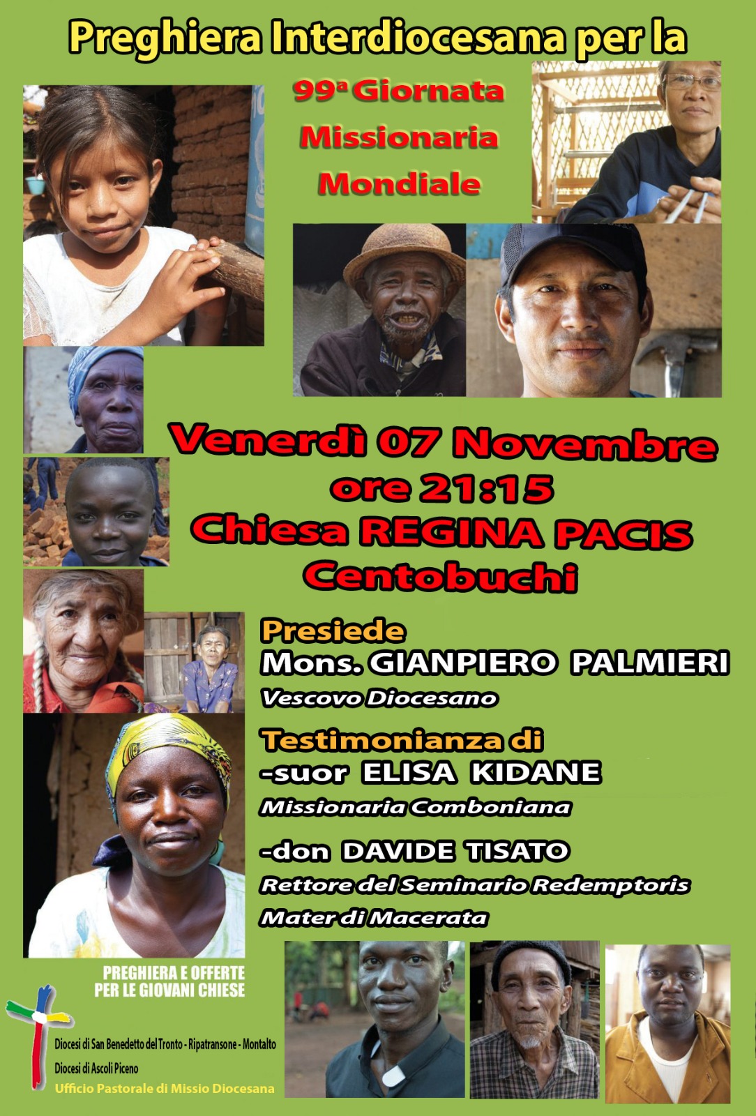 La celebrazione sarà presieduta da Mons. Gianpiero Palmieri, vescovo delle due diocesi del Piceno, e vedrà la partecipazione e le testimonianze di suor Elisa Kidane, missionaria comboniana, e di don Davide Tisato, rettore del Seminario Redemptoris Mater di Macerata.