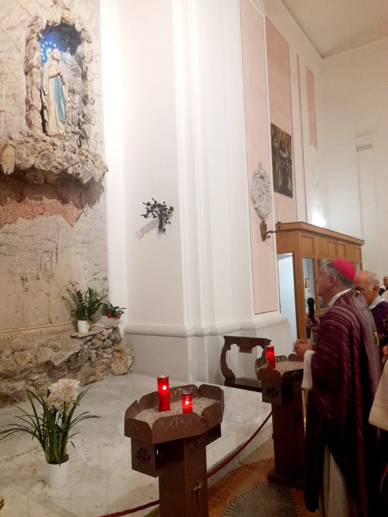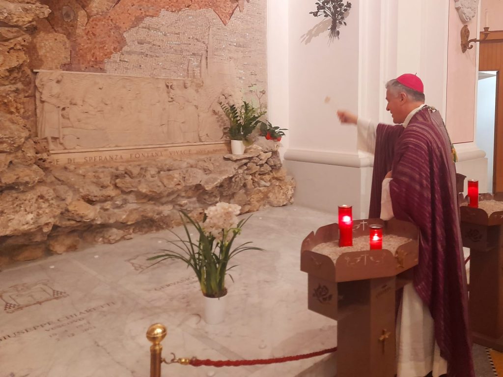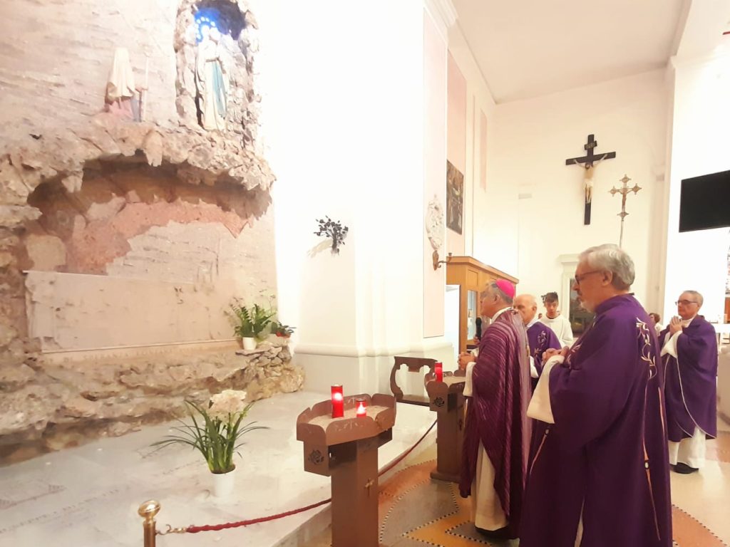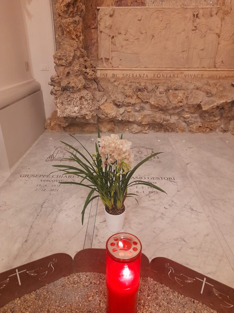 Al termine della Messa, il vescovo Gianpiero si è recato verso la nicchia della Madonna di Lourdes e si è fermato in preghiera davanti alle tombe dei vescovi Giuseppe Chiaretti e Gervasio Gestori: “Preghiamo sia per chiedere al Signore la loro pace, sia per chiedere loro l’intercessione per i nostri defunti”. A seguire molti dei fedeli presenti si sono recati a pregare sulla tomba dei primi due vescovi della Diocesi Truentina.