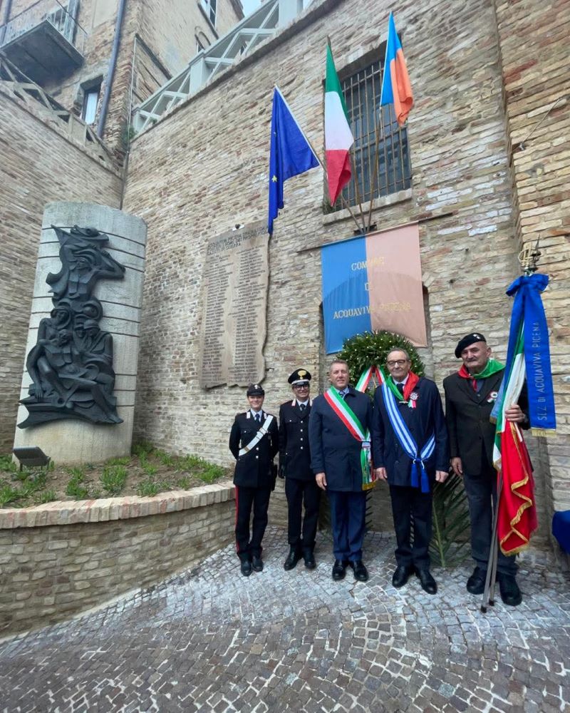 La cerimonia è poi proseguita davanti al Monumento ai Caduti di Acquaviva Picena, dove sono stati ricordati i giovani acquavivani che hanno combattuto e sacrificato la propria vita per la libertà. I loro nomi sono stati letti con commozione dagli studenti dell’Istituto Scolastico “De Carolis”, in un simbolico passaggio di memoria tra generazioni.