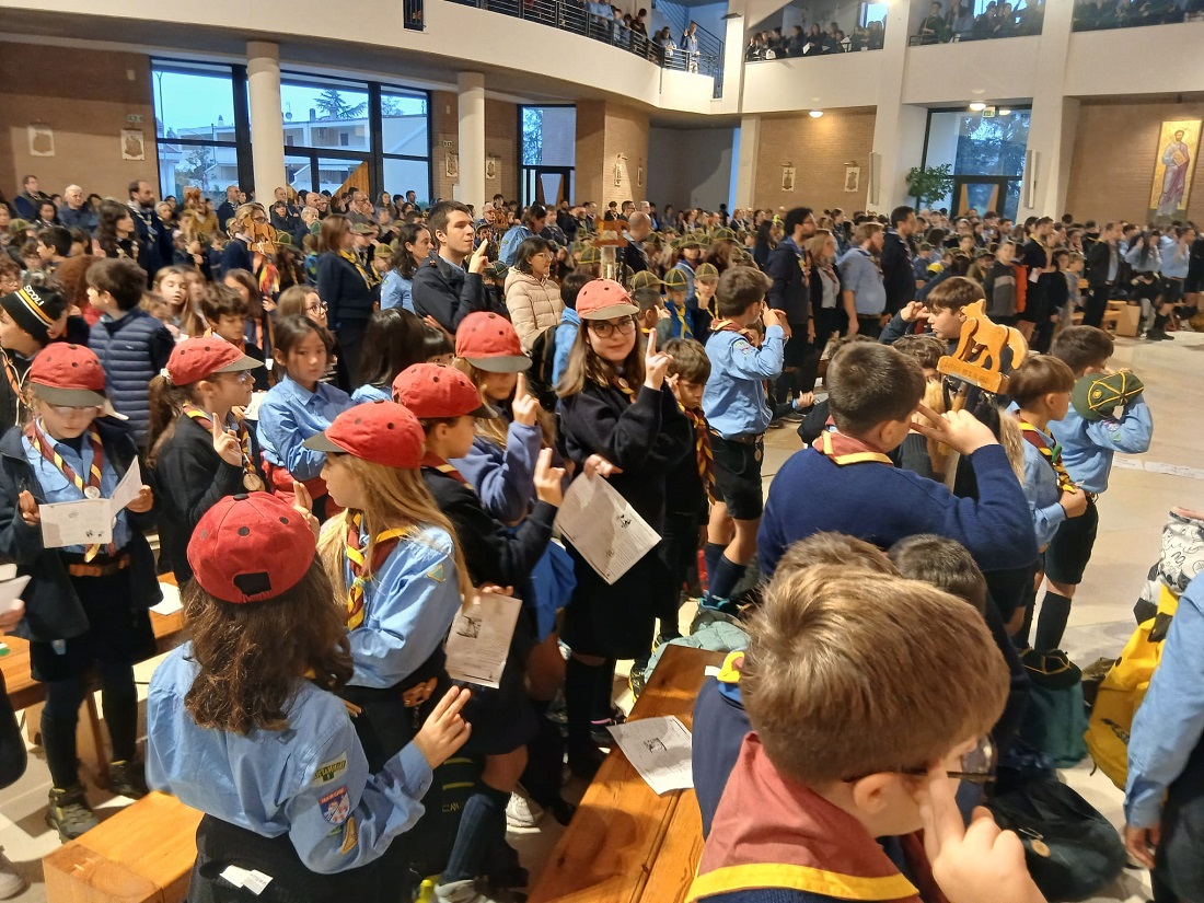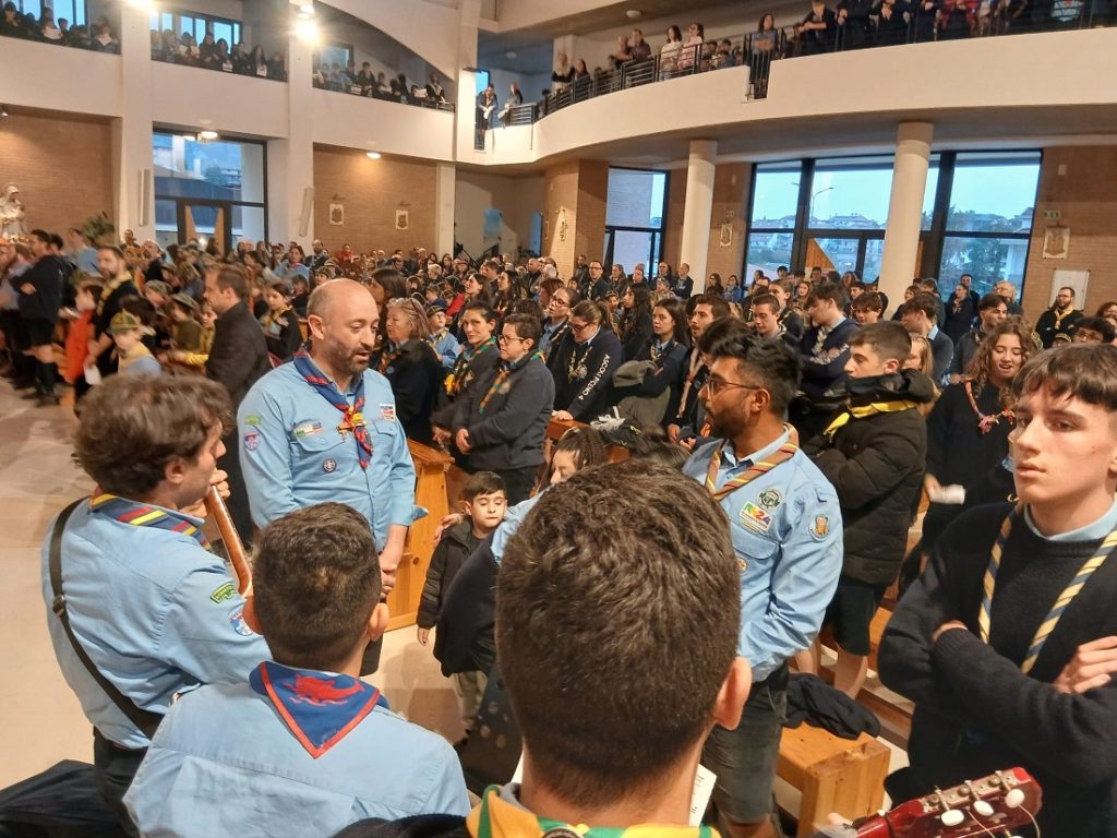 Centinaia di fazzolettoni multicolori, il tipico foulard scout, sono stati indossati con orgoglio sia dai più giovani – tra cui la piccola Martina, coccinella di otto anni del gruppo di Grottammare 1 – sia da partecipanti più anziani, come Maria Grazia, ottantasei anni, appartenente al gruppo scout Ascoli 2. Il canto del coro, accompagnato dal suono dell’organo, dalle chitarre e da un bongo, ha avvolto la chiesa in un clima di solenne raccoglimento.