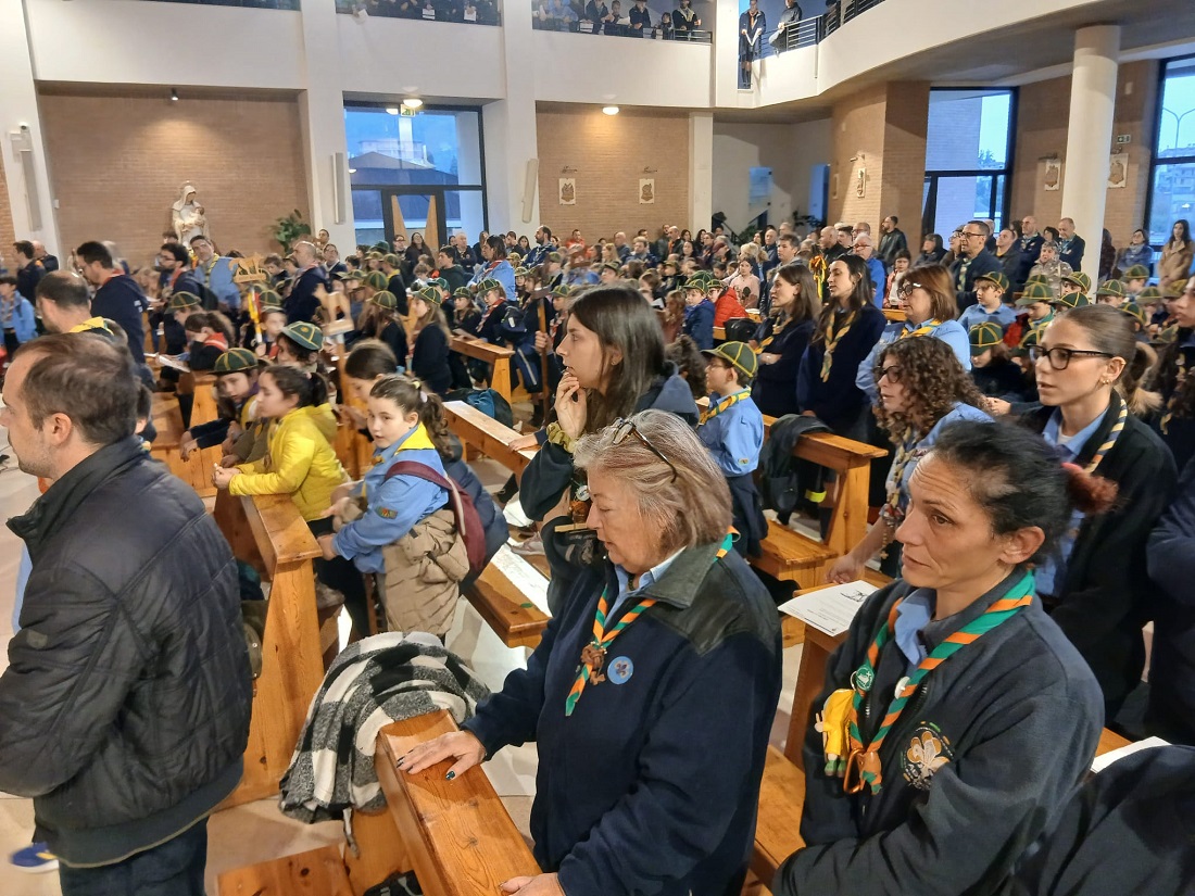 DIOCESI – Sabato 8 novembre, alle ore 16:00, nella chiesa di San Luca Evangelista, situata nel borgo di Villa Pigna, nel comune di Folignano, si è svolta la celebrazione eucaristica in memoria dei fratelli scout defunti. L’edificio religioso, ha accolto più di settecento scout appartenenti alla “Zona Picena”, provenienti da numerosi gruppi dell’A.G.E.S.C.I. (Associazione Guide e Scout Cattolici Italiani).