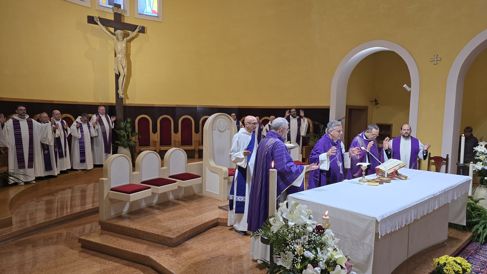 La Celebrazione Eucaristica, che è stata presieduta dal vescovo Palmieri, è stata concelebrata da numerosi preti, tra i quali don Patrizio Spina, vicario generale della Diocesi Truentina, don Vincenzo Catani, presidente del SOS Missionario, don Gianni Croci, direttore di Caritas diocesana, don Pierluigi Bartolomei, già collega docente all’Istituto di Istruzione Superiore “Augusto Capriotti“, come il diacono Giovanni Maria Bettoni, che ha servito l’altare.