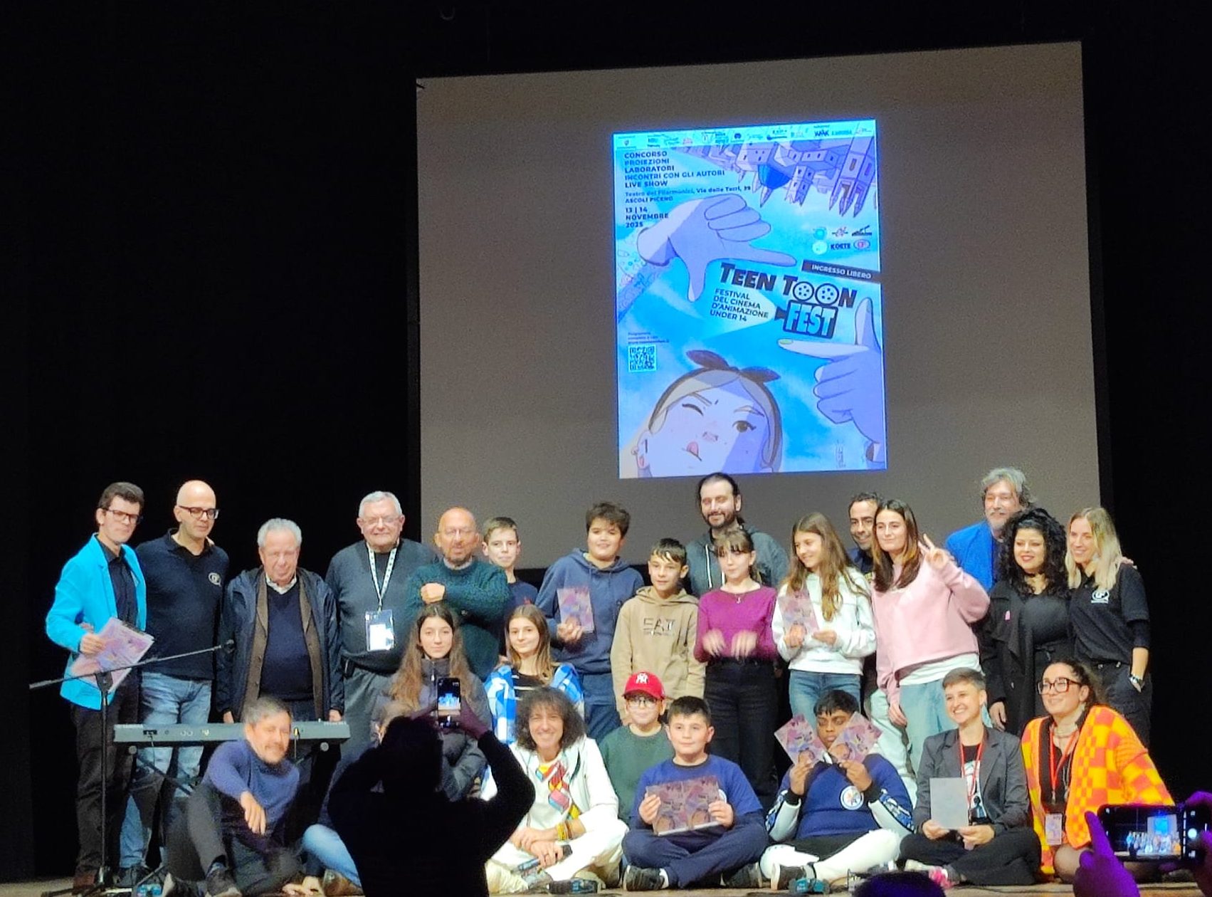 ASCOLI PICENO – Sabato 14 novembre, al Teatro Filarmonici di Ascoli Piceno, si sono svolte le premiazioni del Teen Toon Fest 2025, iniziativa nazionale che racconta il cinema d’animazione attraverso lo sguardo dei più giovani. Il concorso, rivolto ai ragazzi “under 14” e giudicato dai loro coetanei, è promosso da Koete, Anteas odv Ascoli Piceno, Parrocchia SS. Simone e Giuda, Cinecircolo don Mauro – Nel corso del tempo, Associazione La Corolla APS e Dimensione Fumetto, con il patrocinio del Comune e il contributo di BIM Tronto, Falone Costruzioni, Gruppo Gabrielli, Sabelli, Tondi. Collaborano inoltre l’Ordine dei Giornalisti delle Marche, Avis Provinciale e Comunale di Ascoli Piceno, Terremoti di Carta, Roma Film Corto, Moscerine Film Festival, Cartoon Village, MagmAnimation e ACCA – Accademia di Comics, Creatività e Arti Visive.
