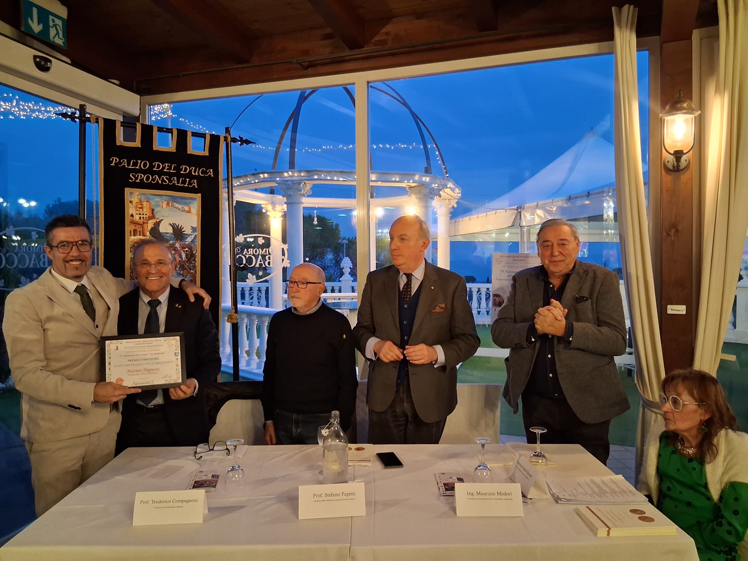 ACQUAVIVA PICENA – Nel pomeriggio di domenica 16 novembre presso il ristorante La dimora di Bacco di Monteprandone si è tenuta la venticinquesima edizione della “Giornata per la storia”, promossa e organizzata dal Palio del Duca aps in collaborazione con la Fondazione Federico II di Jesi.
