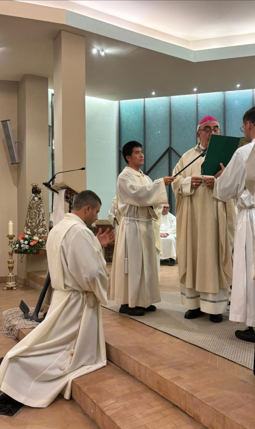 DIOCESI – Lo scorso 30 Ottobre 2025, nella cappella del Seminario regionale delle Marche, in Ancona, durante una Celebrazione Eucaristica presieduta dal vescovo di Senigallia, mons. Franco Manenti, due seminaristi della Chiesa del Piceno hanno compiuto un ulteriore passo avanti nel cammino verso l’Ordinazione Presbiterale: Simone Gasperi, della Diocesi di San Benedetto del Tronto – Ripatransone – Montalto, ha ricevuto il Ministero dell’Accolitato (leggi qui l’articolo: https://www.ancoraonline.it/2025/11/11/seminarista-simone-gasperi-laccolitato/), e Giampiero Alfonzi, della Diocesi di Ascoli Piceno, ha ricevuto il Ministero del Lettorato.