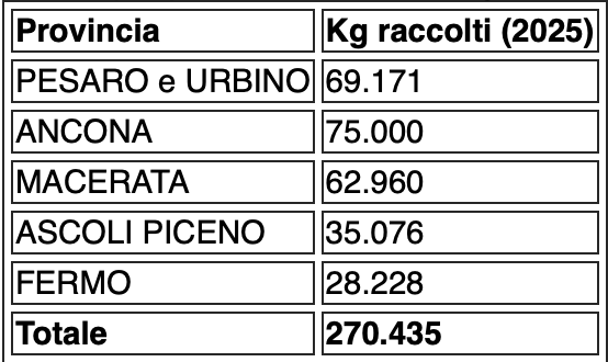 Tutte le province hanno visto un aumento esponenziale delle donazioni rispetto al 2024. La distribuzione dei Kg raccolti per provincia è stata la seguente: