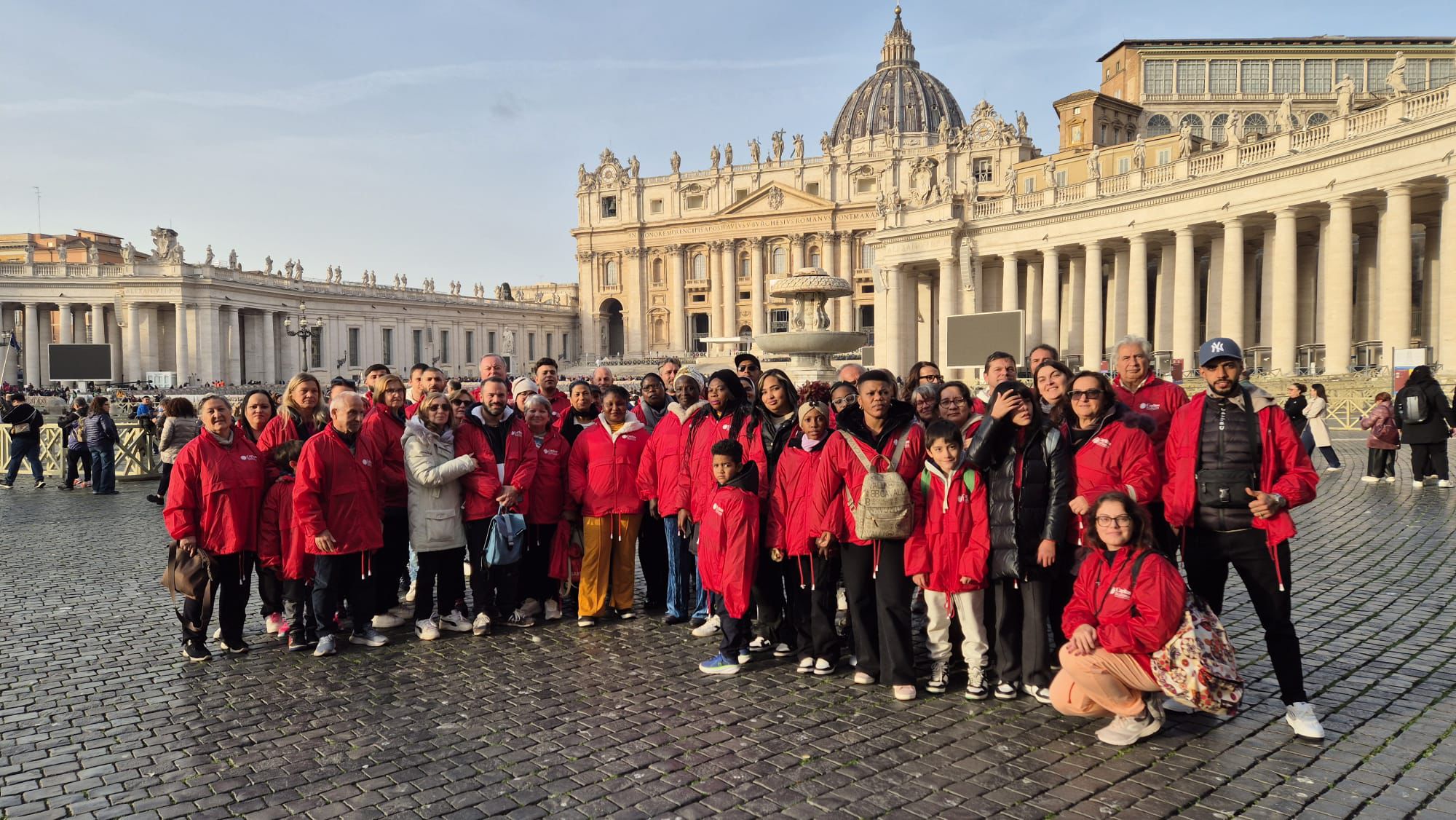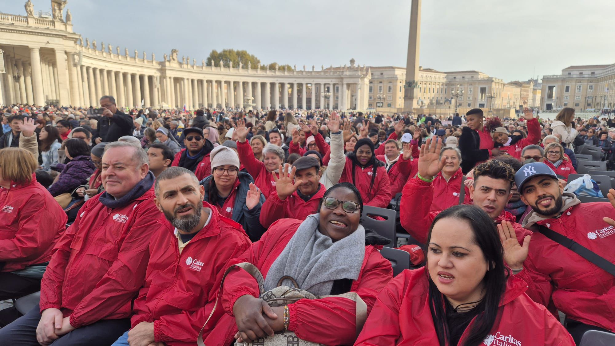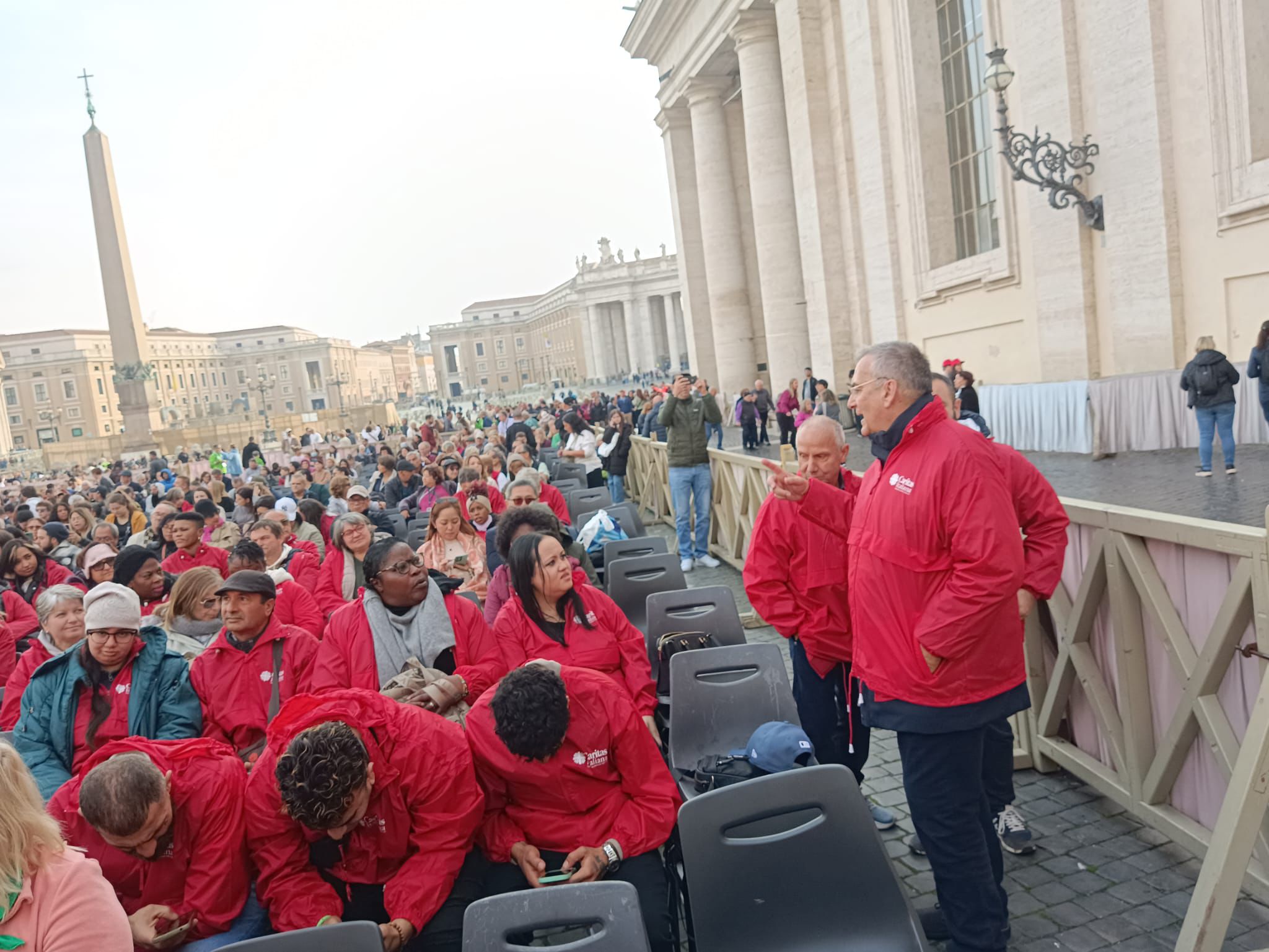 La delusione di non essere accomodati in basilica ha presto lasciato il posto alla gioia di attendere insieme in piazza, con il sole a creare un clima gradevole, facendo così dell’attesa occasione di dialogo e di nuovi incontri, nessuna barriera di lingua, nessuna difficoltà“.