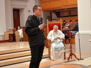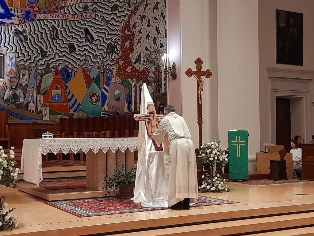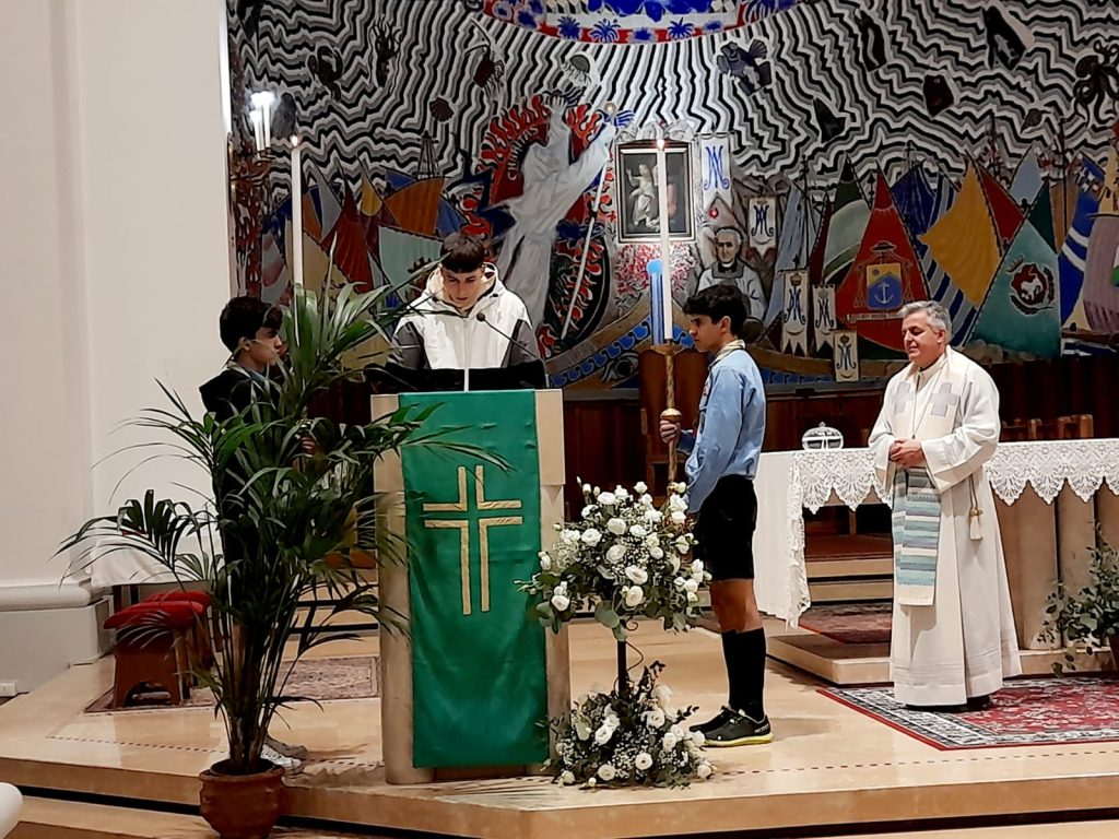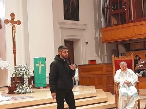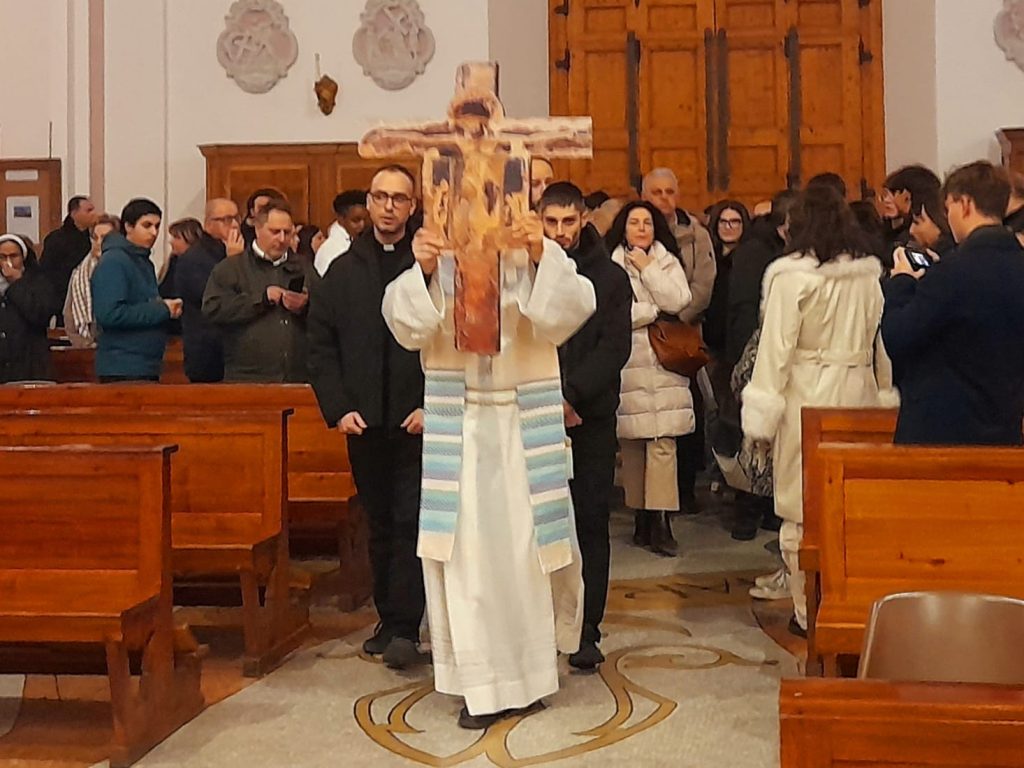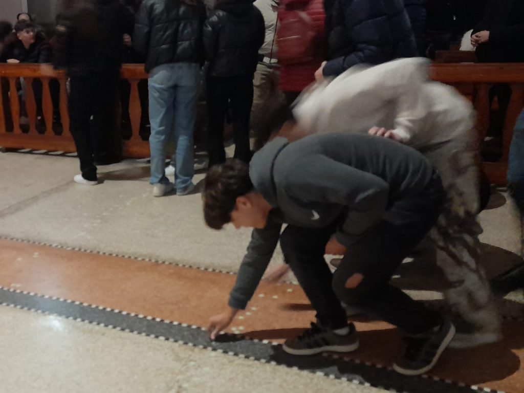 A concludere la serata è stato il vescovo Gianpiero Palmieri, il quale ha affermato: “L’amicizia è un fatto di sguardi. Domenica ci sarà il racconto di uno sguardo particolare che Gesù dà ad una persona, forse l’ultimo sguardo d’amore al mondo. È lo sguardo che Gesù rivolge a Disma, quello che comunemente viene chiamato il buon ladrone. Ma Disma non era buono per niente! Per stare su quella croce chissà quante ne aveva fatte! Ne aveva fatte sicuramente tante quante l’altro ladrone. Disma è dunque uno che nella vita ha peccato. Peccare significa letteralmente ‘sbagliare il bersaglio’. Quando pensiamo al peccato, dobbiamo immaginare un arco e una freccia che non centra il bersaglio. Peccare, infatti, significa sbagliare bersaglio nella vita. Vorrei essere felice e mi ritrovo triste. Vorrei avere dei buoni amici e mi ritrovo solo. Vorrei andare bene a scuola e invece non riesco. Insomma anche Disma aveva peccato, aveva commesso degli errori di bersaglio, come capita a tutti. Ma quando sale sulla croce, capisce una cosa importante, cioè che quello che era stato condannato, era il Re. Allora Disma dice al Signore una cosa molto umana: «Gesù, ricordati di me quando entrerai nel tuo regno». Ed è questo lo sguardo di amicizia a cui Gesù rivolge, a sua volta, il suo sguardo d’amicizia, dicendogli: « In verità ti dico, oggi sarai con me nel Paradiso». Il primo ad andare in Paradiso, dunque, dietro a Gesù, non è la Madonna, che è la creatura perfetta, ma Disma, il ladrone. Questo significa che, quando uno si guarda allo specchio e si riconosce peccatore ma al tempo stesso volge lo sguardo al Signore, ecco che il suo cuore si infiamma“.
