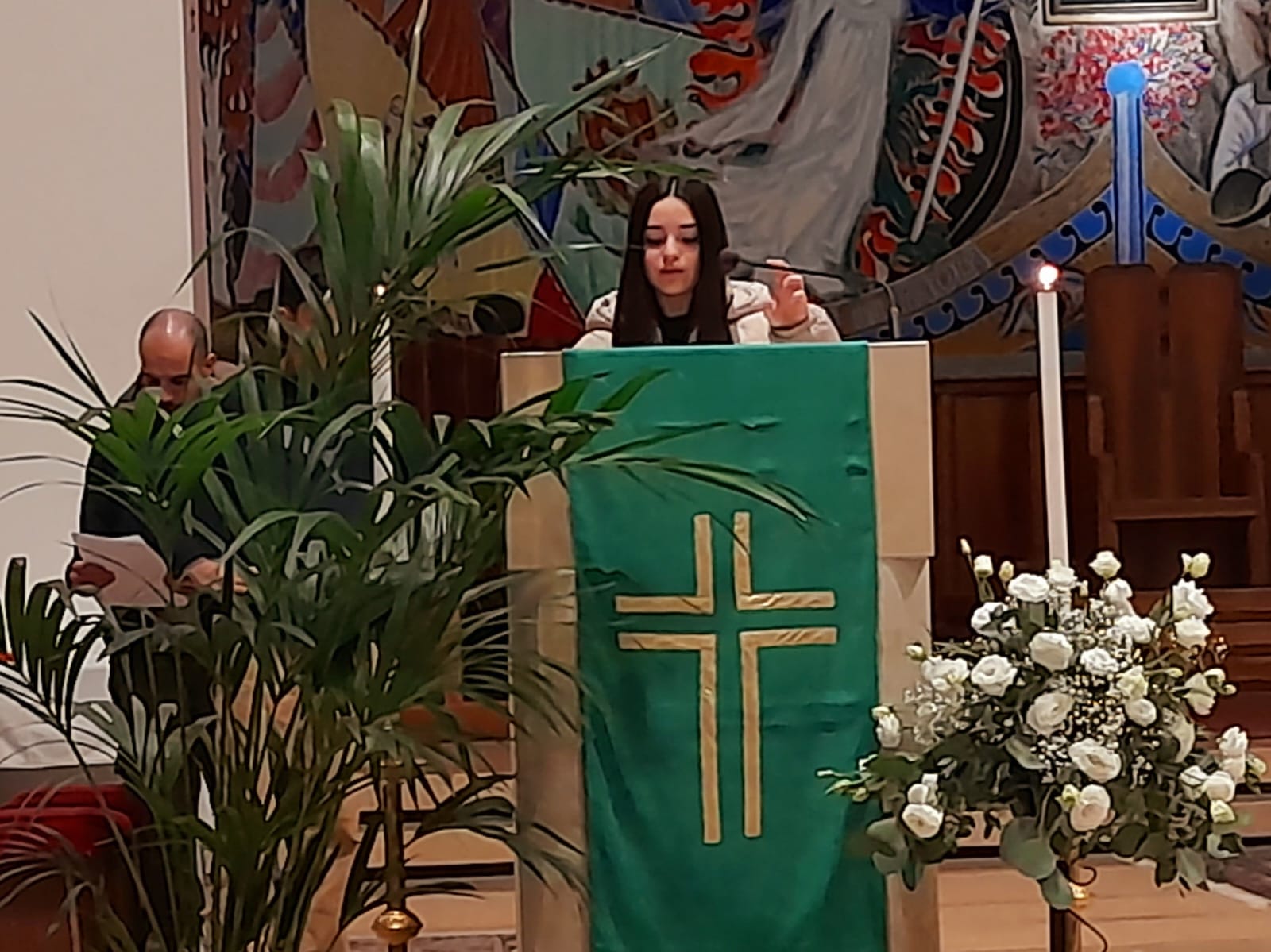 A creare l’atmosfera giusta per la serata è stato il brano di Olly “Ho un amico“, a cui è seguita la lettura di uno stralcio del Messaggio del Santo Padre per la Giornata Mondiale dei Giovani. Ma l’incontro è entrato nel vivo con la testimonianza della giovane Giulia Iozzi, studentessa universitaria, la quale ha raccontato l’esperienza di amicizia con una sua coetanea: “Ho conosciuto questa ragazza all’università per motivi di studio. Si è offerta di aiutarmi. Io non avevo chiesto niente, ma lei ha capito che avevo bisogno di aiuto e si è fatta vicina. Il giorno del suo compleanno, per ringraziarla, le ho preparato una bella torta, ma, quando tutta entusiasta glie l’ho consegnata, lei mi ha detto che non mangia dolci! È stato lì che ho capito che fino a quel momento il mio legame con lei era rimasto in superficie, non era mai andato in profondità. Io non la conoscevo affatto, non sapevo cosa facesse nel tempo libero, quali fossero le sue passioni o i suoi gusti. Quindi, nonostante il rifiuto della torta, ho deciso di andare oltre quel no, che comunque mi ha ferito, mi ha fatto rimanere male. Ho deciso di conoscerla veramente e così ho scoperto che l’amicizia non solo stringersi la mano, dirsi ciao e parlare del più e del meno; bensì è conoscersi davvero, saper ascoltare, esserci, offrirsi all’altro, volersi bene. E ho scoperto anche che l’amicizia è bella perché non è straordinaria, bensì si manifesta nelle pieghe della vita, nei momenti inattesi, nelle difficoltà, nella gioia, nella quotidianità”.