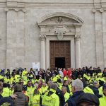 «La vostra è una grande testimonianza – ha sottolineato nell’omelia -. Non tutti gli uomini partecipano a ciò che fate voi. A frenarci è spesso una gabbia, quella dell’individualismo, del nostro delirio. Non esistono più gli altri, ma solo noi stessi. Voi avete fatto una scelta: uscire da sé per rivolgere lo sguardo agli altri e alla realtà. Se c’è una necessità, io corro, insieme, perché viene prima dei “miei comodi”. È il Signore ad aver suscitato in voi la chiamata a entrare in questo servizio per il prossimo». Parole pronunciate in una chiesa di Santa Maria della Marina gremita di giallo fluo e rosso, tra le uniformi dell’Associazione Carabinieri e dei molti sindaci marchigiani intervenuti con i loro tricolori. Una festa di colori e partecipazione.