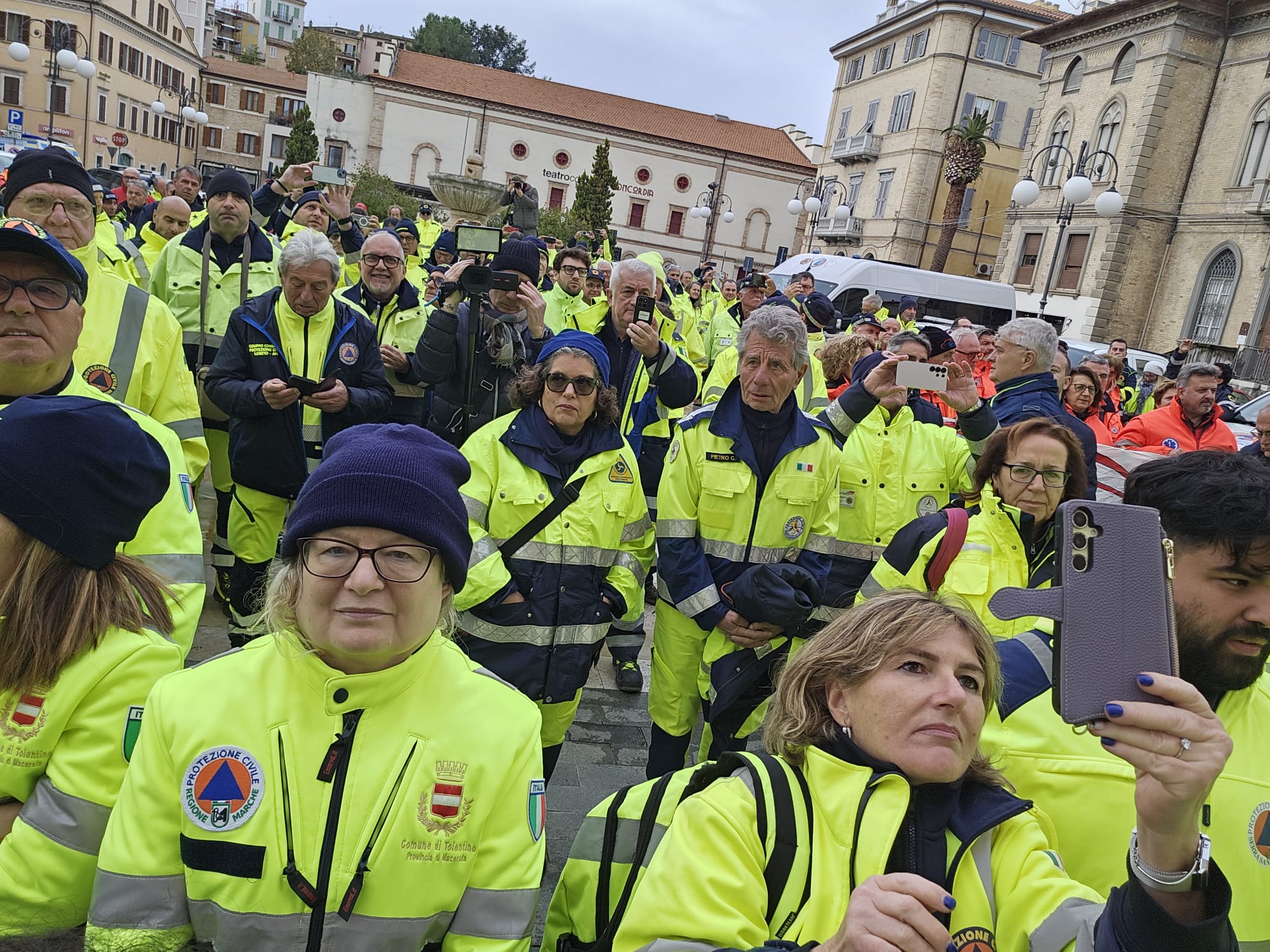 SAN BENEDETTO DEL TRONTO – Giallo fosforescente e non più grigio. Così una giornata, quella del 22 novembre, da piovosa e fredda si è accesa del “sole fluo” delle centinaia di uniformi della Protezione Civile delle Marche a San Benedetto del Tronto.